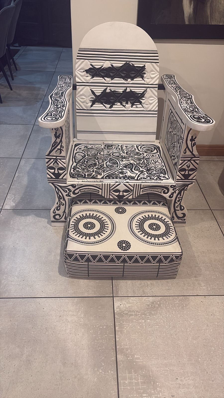 Medium: Mixed Media on Chair, Acrylic markers on discarted chair
