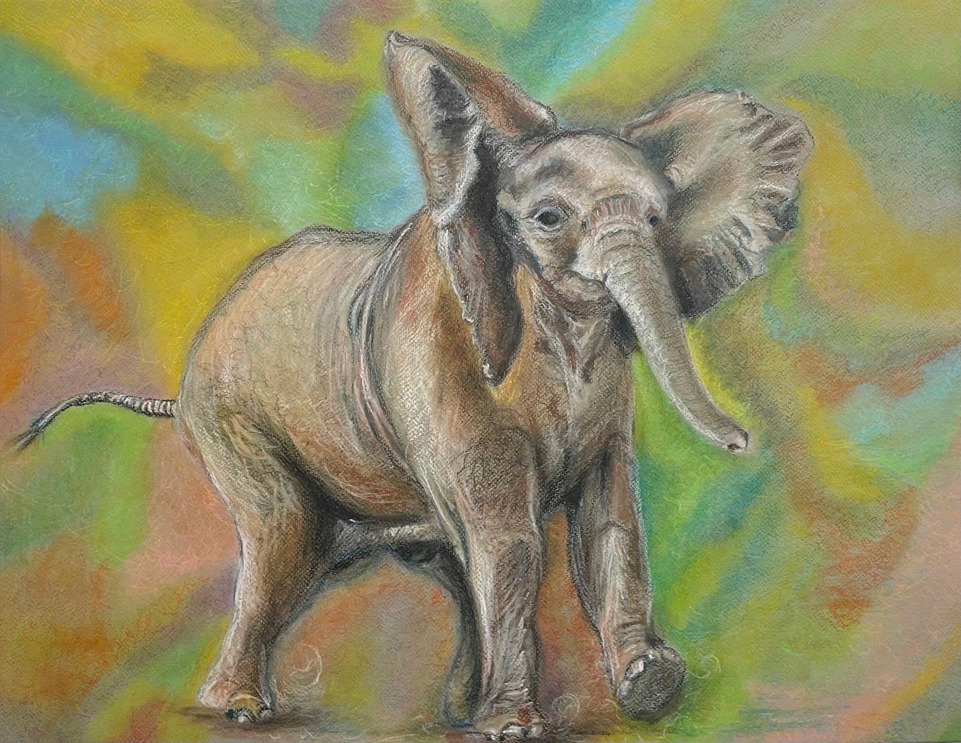 Experience the stunning vibrancy of Meri Botha's pastel drawing, featuring a majestic elephant against a bold, colorful backdrop. This masterpiece brings a touch of nature to any space, while showcasing the artist's skilled use of soft pastel techniques. Own a true work of art with Abundance of Color.