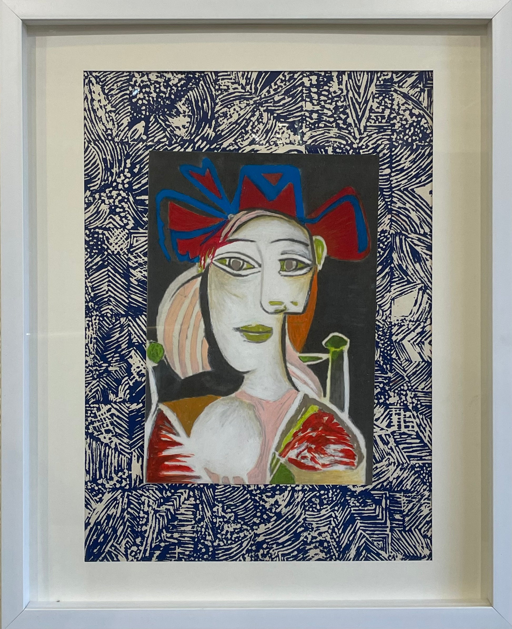 This silkscreen print by Tineke Meijer beautifully integrates oil pastel to create a striking and unique cubism portrait of a woman. The use of multiple mediums adds depth and texture to the piece, making it a one-of-a-kind addition to any art collection.