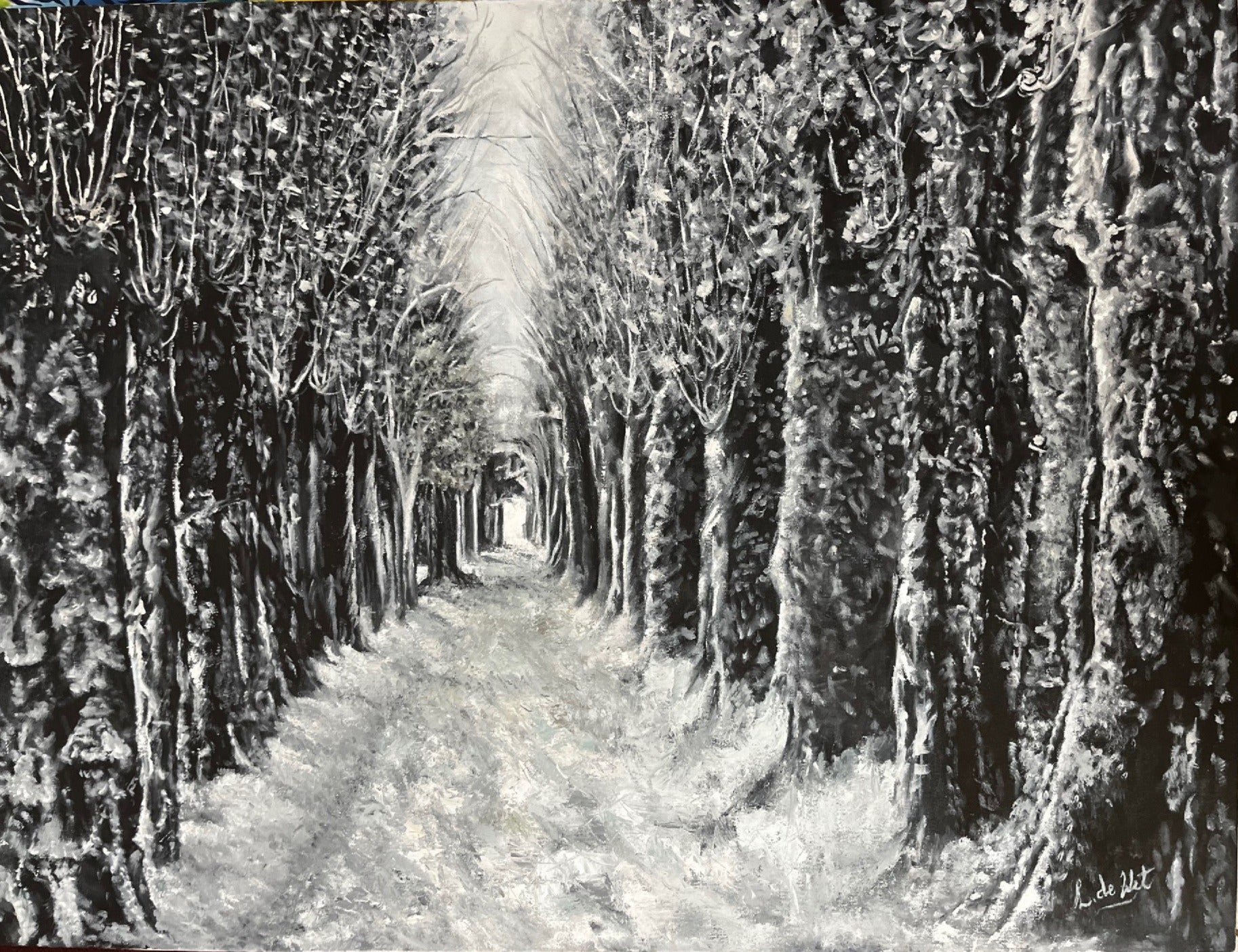 Immerse yourself in the natural beauty of Honfleur, Normandy with the Allee (Lane) du Capitaine Paul Panier landscape artwork. With a striking black and white contrast, this piece captures the tranquil tree-lined lane, creating a sense of peace and serenity. Bring the charm of France into your home!
