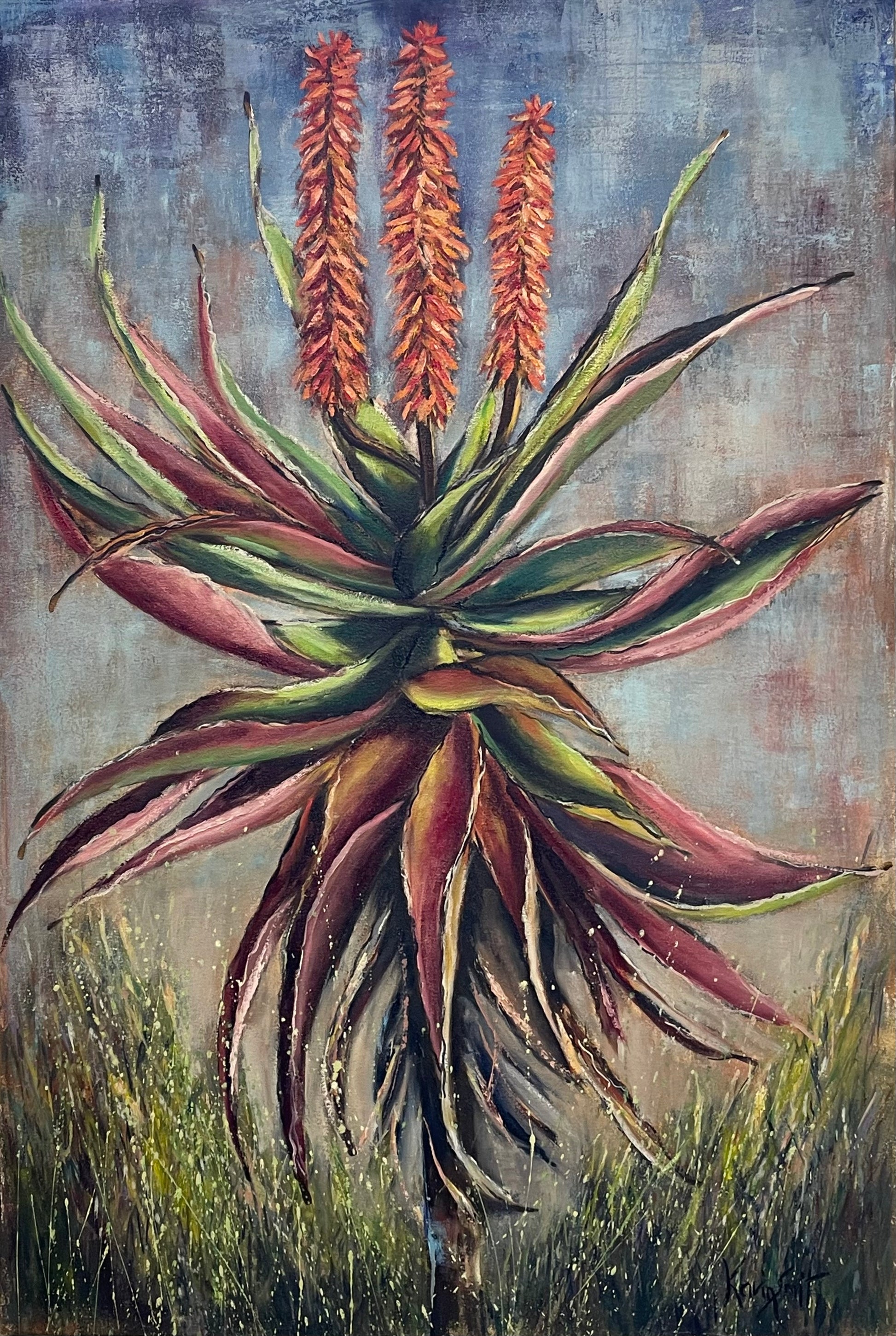 Unleash your inner artist with our Aloe oil painting. Rich colors and intricate brushstrokes bring this botanical beauty to life. Add a touch of sophistication to any space with this exclusive piece. Elevate your decor with the timeless elegance of an aloe captured on canvas.