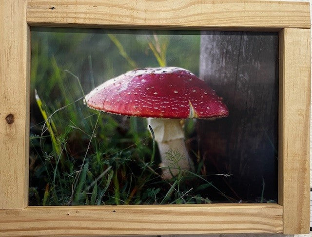 Long tied to folklore and myth, Amanita muscaria evokes a sense of enchantment, yet also stands as a powerful metaphor for life’s unpredictability. Just as it appears suddenly and briefly—vibrant against the fading forest—it reminds us to embrace what is fleeting, beautiful, and unknown in our own journeys. Framed in modest pine wood, each piece is rooted in the landscape where it was found, reflecting the simplicity and honesty of its natural setting.
