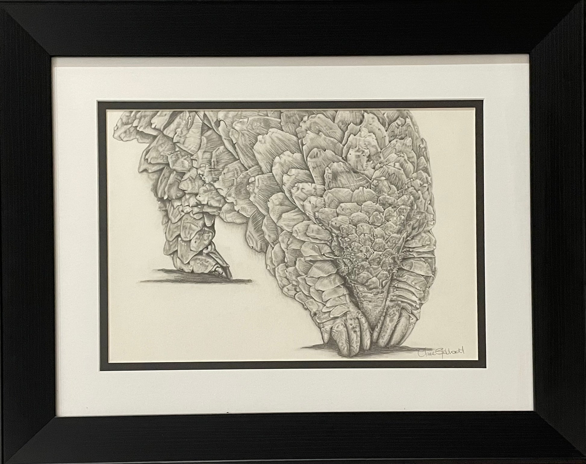 Introducing Aurum I, a majestic portrait of a pangolin captured in a striking graphite drawing by artist Claire Gebhardt. This exclusive piece combines the intricate details of nature with the sophistication of fine art, making it a unique addition to any luxury collection. Bring the beauty of the natural world into your home with Aurum I.