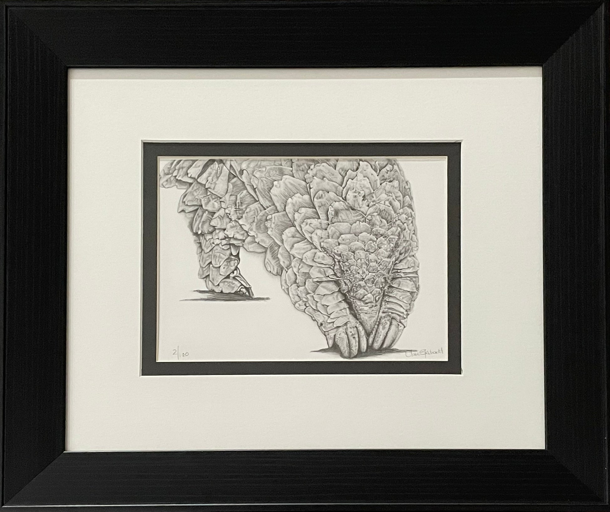 Experience the exquisite elegance of Aurum II, a captivating representation of a pangolin depicted in a striking graphite rendering by artist Claire Gebhardt. This exclusive masterpiece combines the intricate intricacies of nature with the refinement of fine art, making it a one-of-a-kind addition to any luxury collection. Elevate your home with the breathtaking beauty of Aurum II.