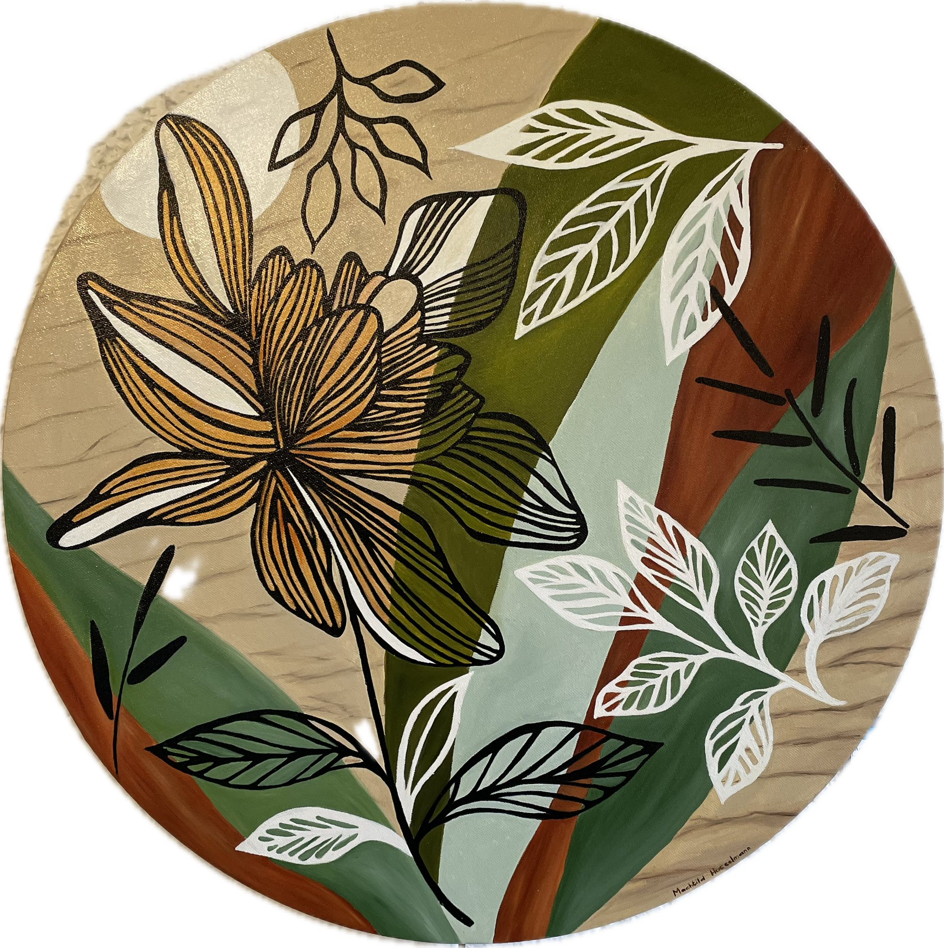 Experience the essence of Autumn with Autumn 3! This beautiful oil painting on round canvas captures the vibrant hues of the season in an abstracted leaf motif. With its warm and inviting palette, it's the perfect addition to any home decor. Add a touch of nature to your space and be inspired by the changing of the seasons.