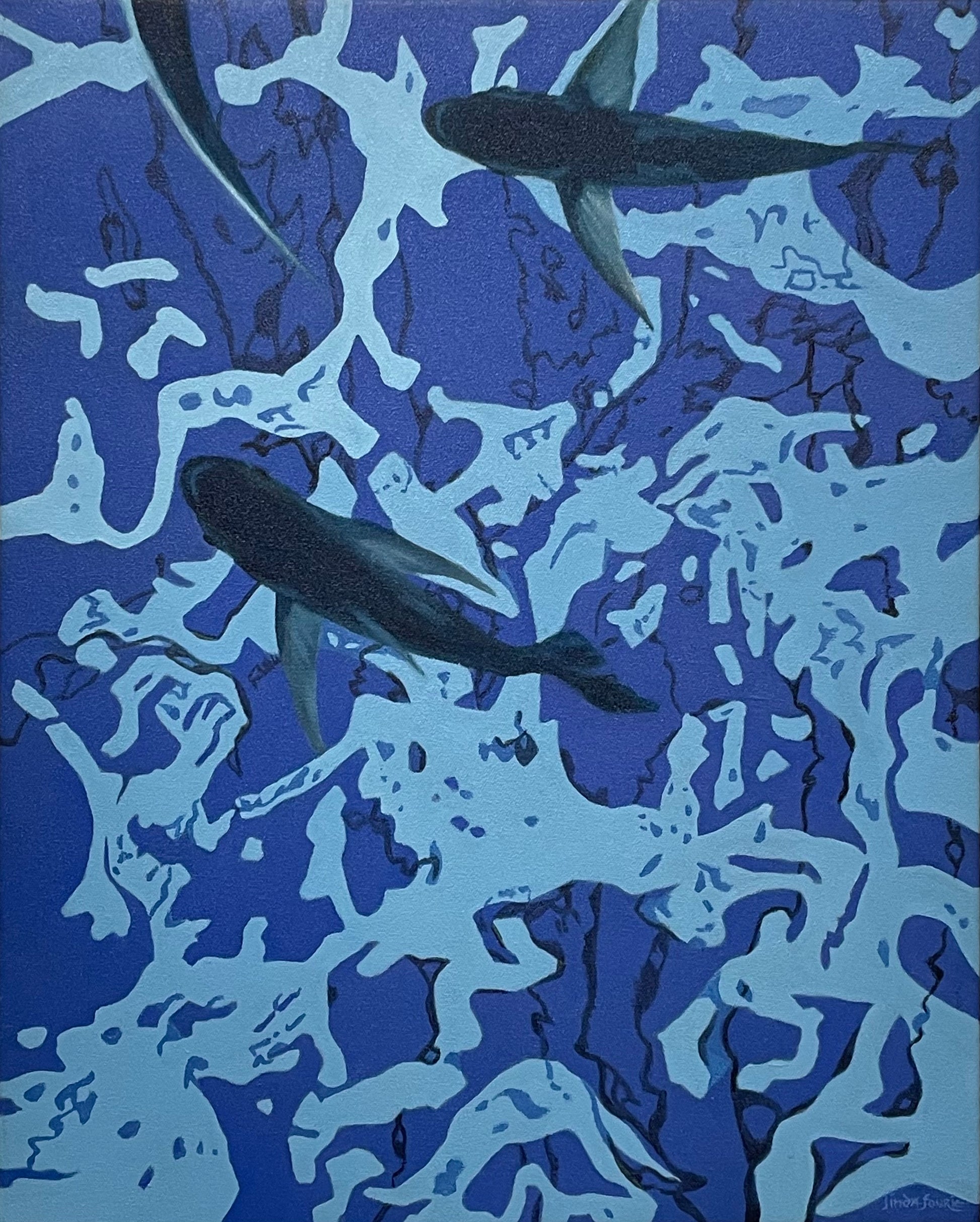 Take a leap of faith and explore the unknown with Blue depth I. Experience the thrill of diving into this stunning oil painting by Linda Fourie, capturing the mystery and beauty of a pond's underwater world. Let your imagination swim free and add a touch of adventure to your home.