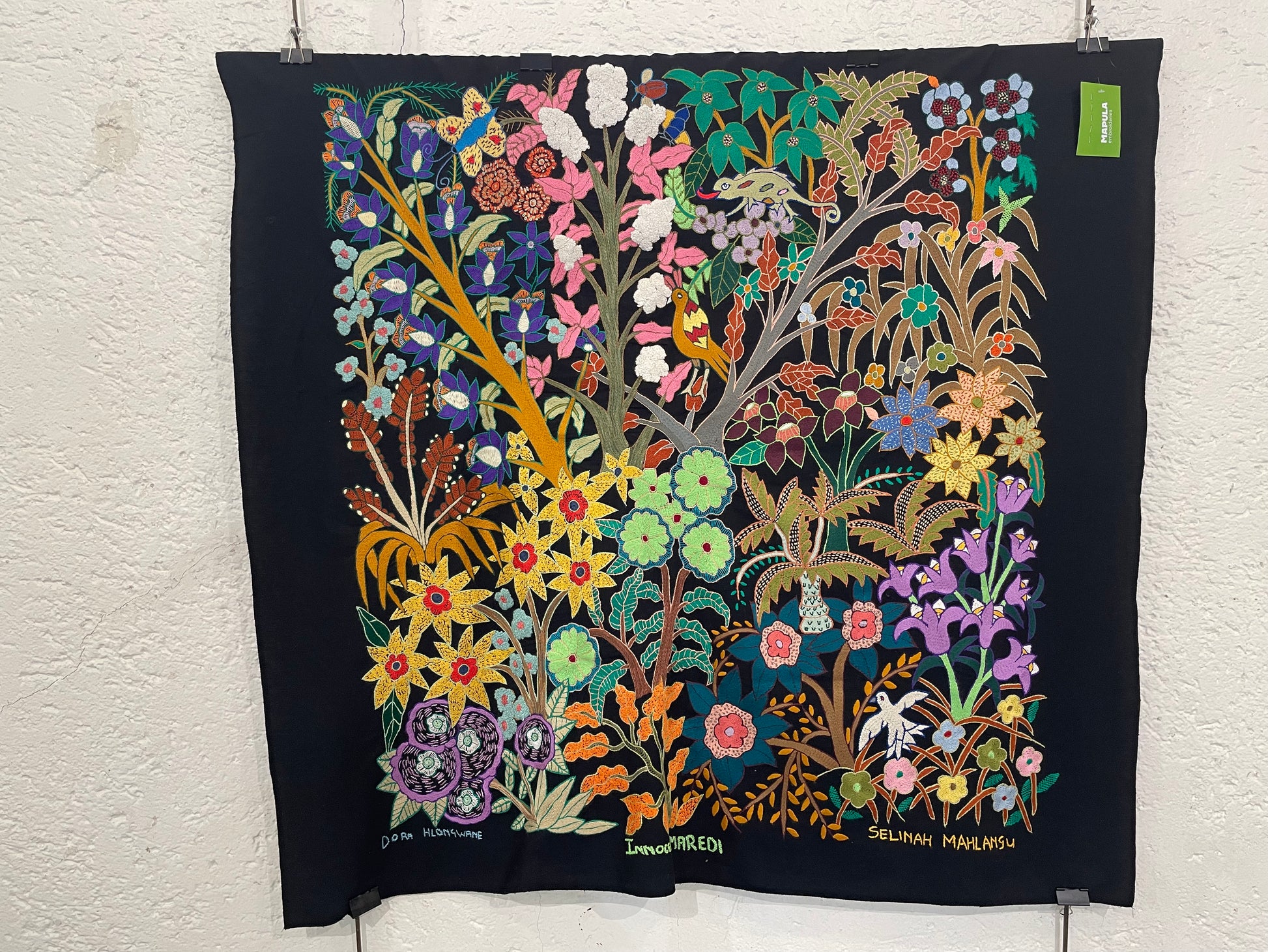 Indulge in luxury with "Botanical" - the hand-embroidered masterpiece on Edenrose cotton by Mapula Embroideries' artists Dorah Hlongwane, Innocent Maredi, and Selinah Mahlangu. Immerse yourself in a botanical scene, crafted with precision and finesse. Elevate your home decor with this exquisite treasure.