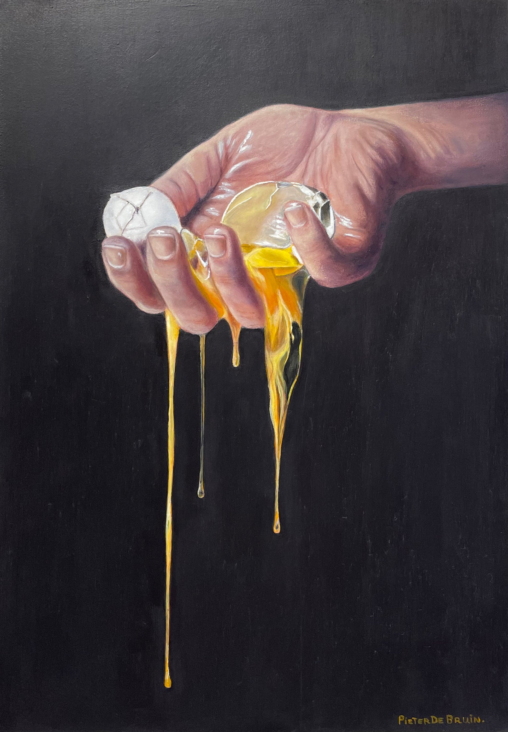 Experience the emotional depth of "Broken Life" with its stunning oil painting of a hand holding a dripping broken egg. This thought-provoking piece captures the fragility of life and the inevitable challenges we all face. Perfect for adding a touch of sophistication to any space.