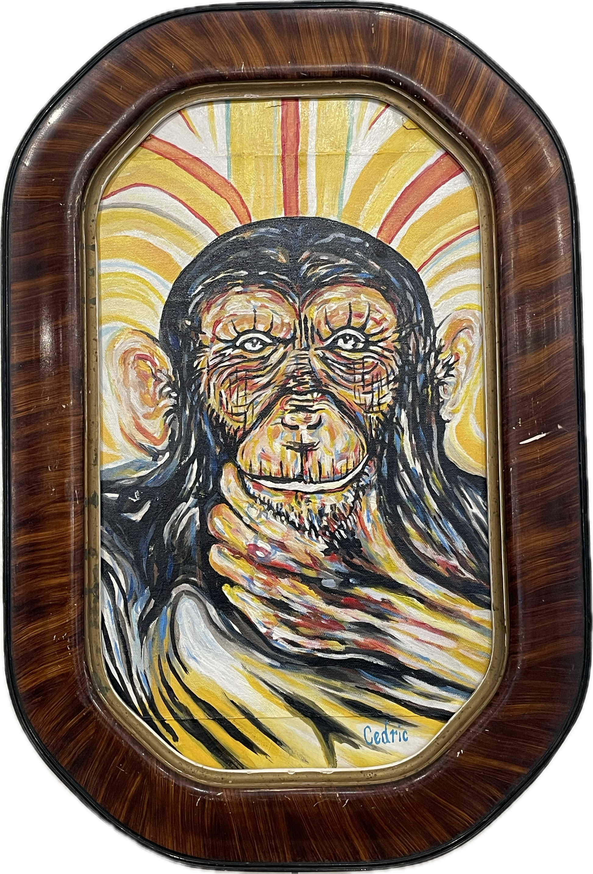 Indulge in the sophistication of "Consider the past," a stunning acrylic painting featuring a pensive monkey. Framed in an antique frame, this masterpiece is both thought-provoking and visually striking. Elevate your decor with this exclusive piece that captures the essence of contemplation.