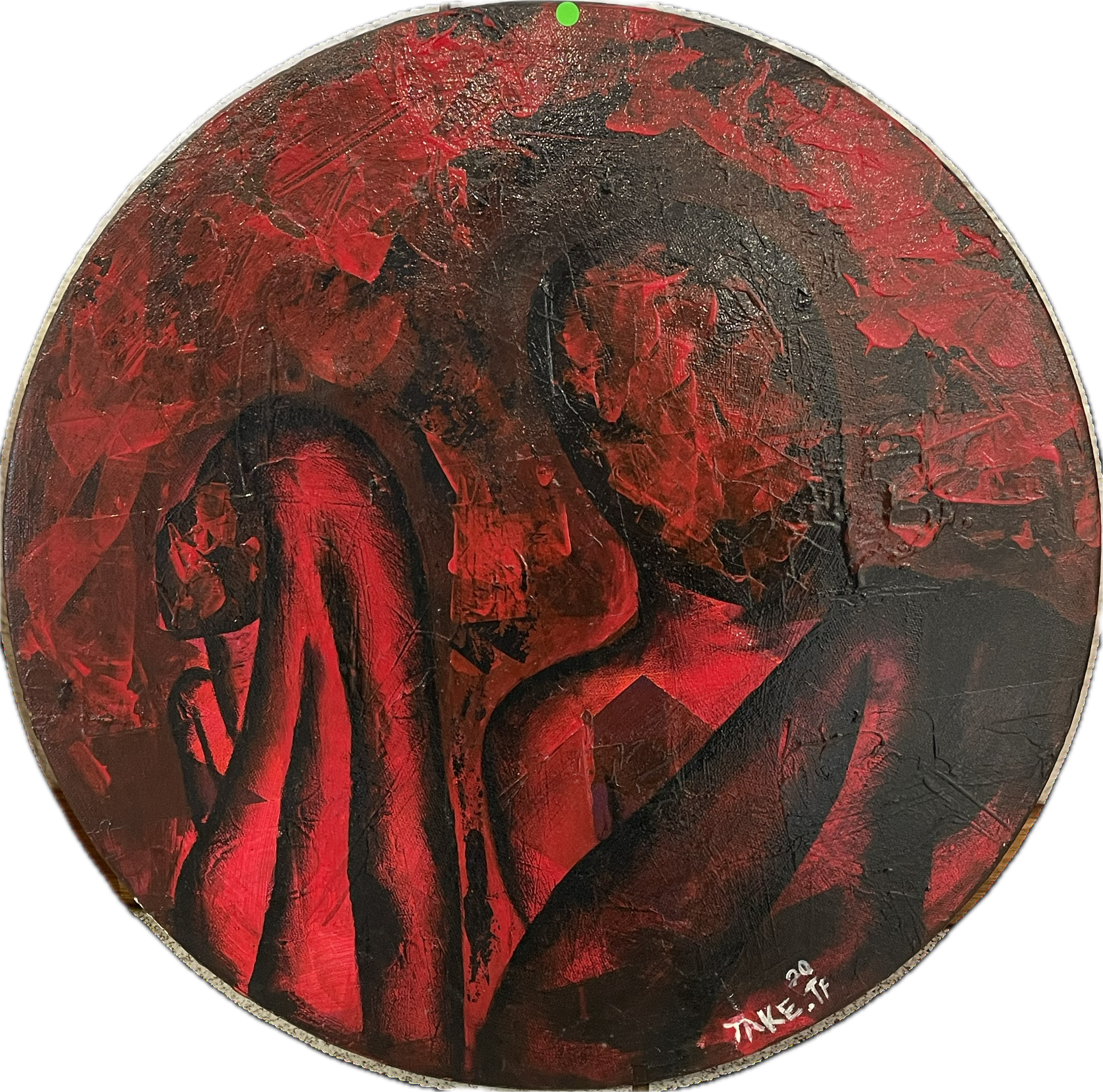 This oil painting, titled "Dark Thoughts", created by Thumelo Take, features an abstract depiction of two figures in black and red. With expert brushstrokes and intricate details, this piece captures the essence of deep contemplation and evokes a sense of intrigue in its viewers. A must-have for any art enthusiast looking to add a thought-provoking piece to their collection.