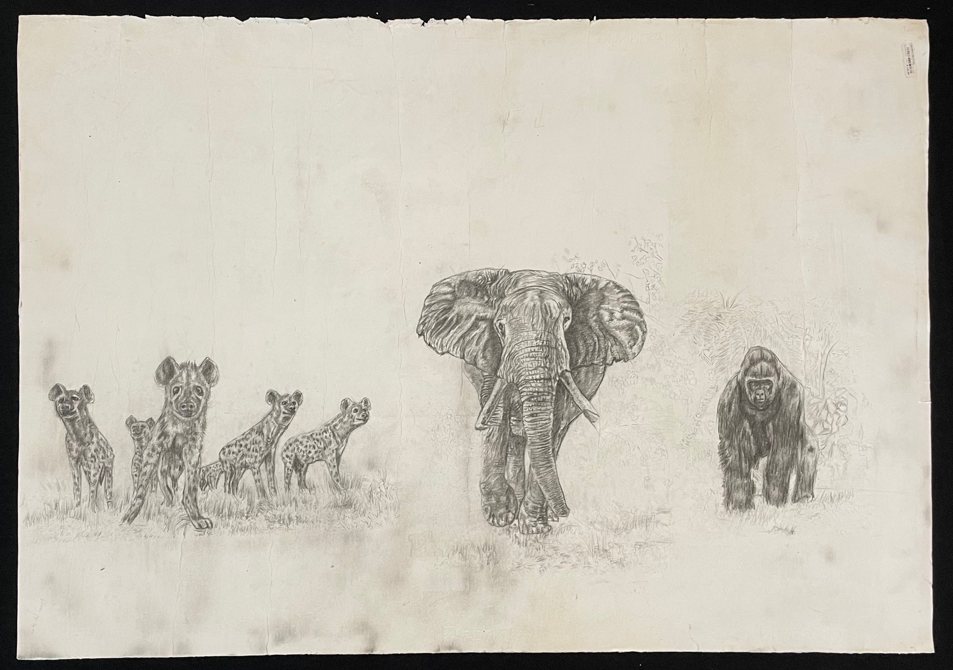 Introducing Familiar - a stunning graphite drawing by Shimane Seemise. Immerse yourself in a world of majestic elephants, cunning hyenas, and powerful gorillas. With intricate detail and masterful strokes, this piece will elevate your space and evoke a sense of sophistication and exclusivity. Unleash the power of nature in your home with Familiar.