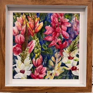 Another brilliant painting by artist Cecilia Allen, bursting with life and colour, this vibrant floral painting celebrates nature's most joyful palette. Each bloom dances across the canvas in bold, cheerful hues—from sunny yellows to deep magentas and lush greens. Perfect for brightening any space, this artwork brings warmth, energy, and a splash of botanical beauty to your walls. A delightful reminder that flowers make everything better.