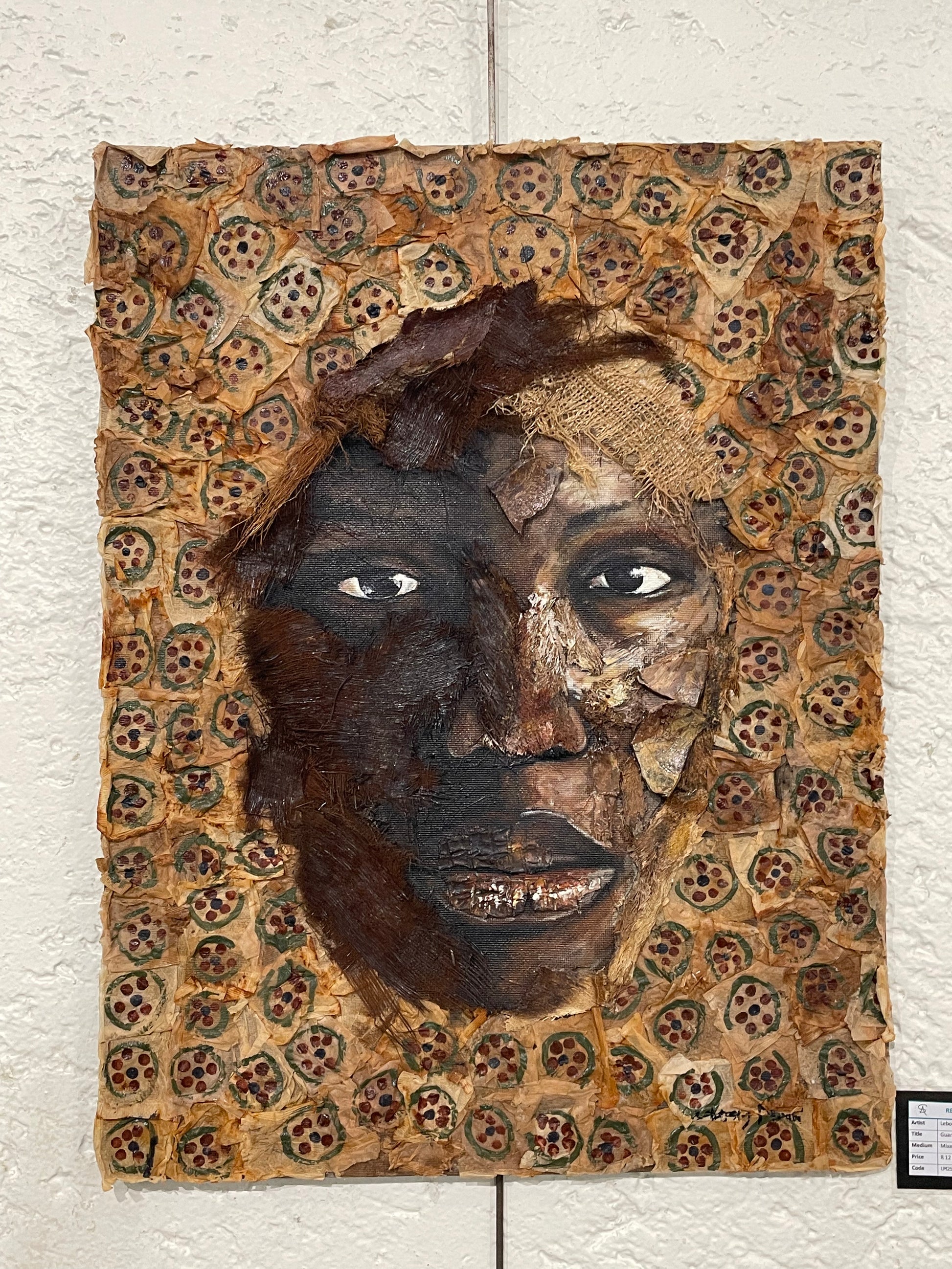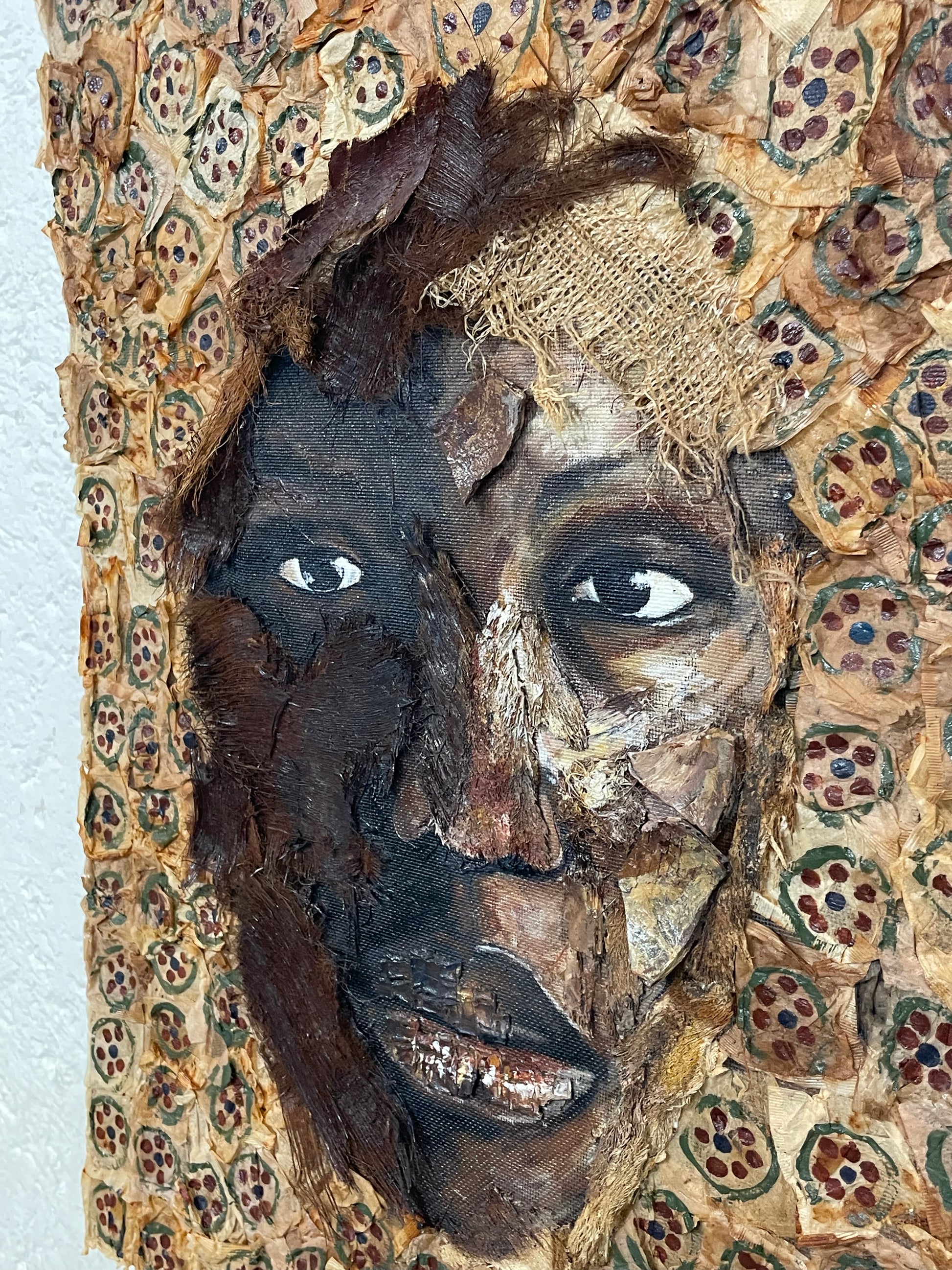 Expertly crafted by acclaimed artist Lebogang Maobi, Guardian is a unique portrait painting made with recycled materials such as teabags, palm wood, and coconut husk. Using acrylic paint, this piece is a stunning example of sustainability and creative expression. Own a one-of-a-kind artwork with a meaningful story behind it.