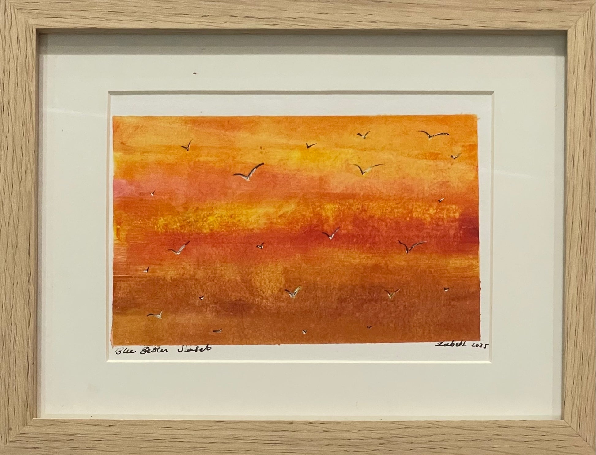 Transform your space with God's Creation II, a stunning water and ink painting by Ilze du Toit. The beautiful colors and imagery of birds flying in an orange sky will bring a sense of peace and beauty to your home. Elevate your space with this exquisite piece of art.