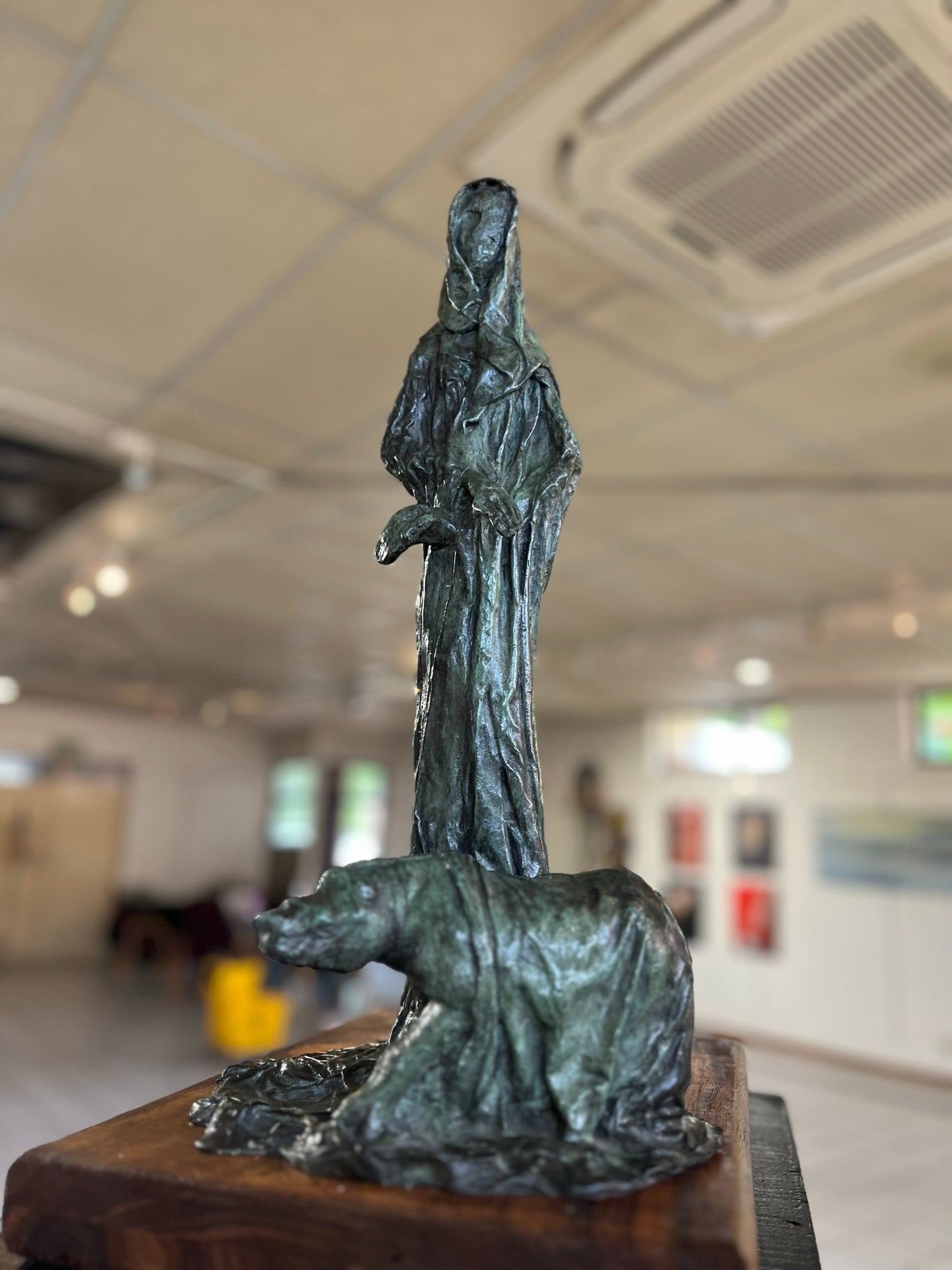 Expertly crafted by Stephanie Bester, the Guardian Angel 2/9 2016 is an impressive bronze sculpture. This limited edition piece depicts a powerful figure standing over a rhino, symbolizing protection and strength. Truly a unique and meaningful addition to any collection.