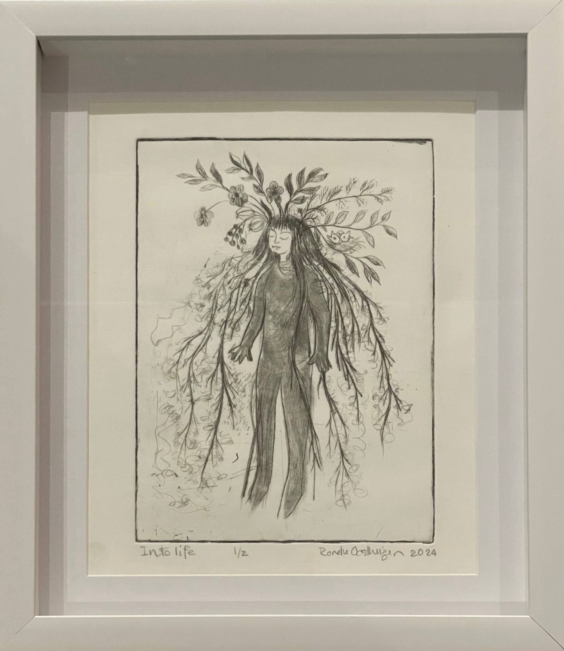 Witness the beauty of life with Into Life. Featuring an etch print by Ronelle Oosthuizen, this piece portrays a human figure from which nature is sprouting. Embrace the interconnectedness of our existence and awaken your appreciation for the wonders of the natural world. Perfect for any art enthusiast or nature lover.