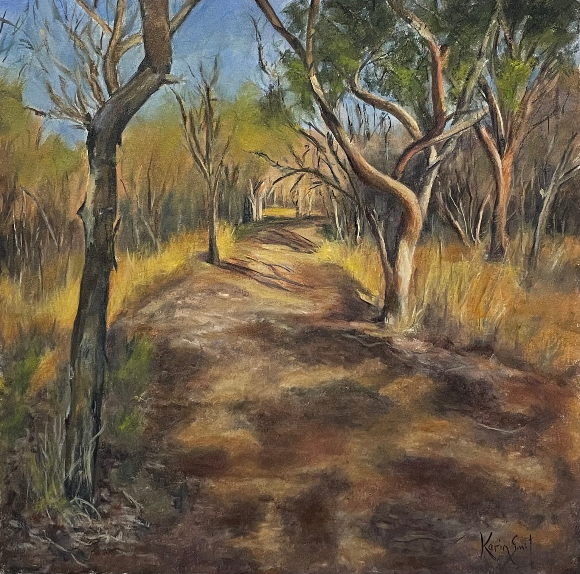 Experience the serenity of nature with 'Into the Light.' This oil painting captures the beauty of a gravel road winding through a lush forest, inviting you to embark on a journey of exploration. Let the calming colors and realistic details transport you into the heart of nature.