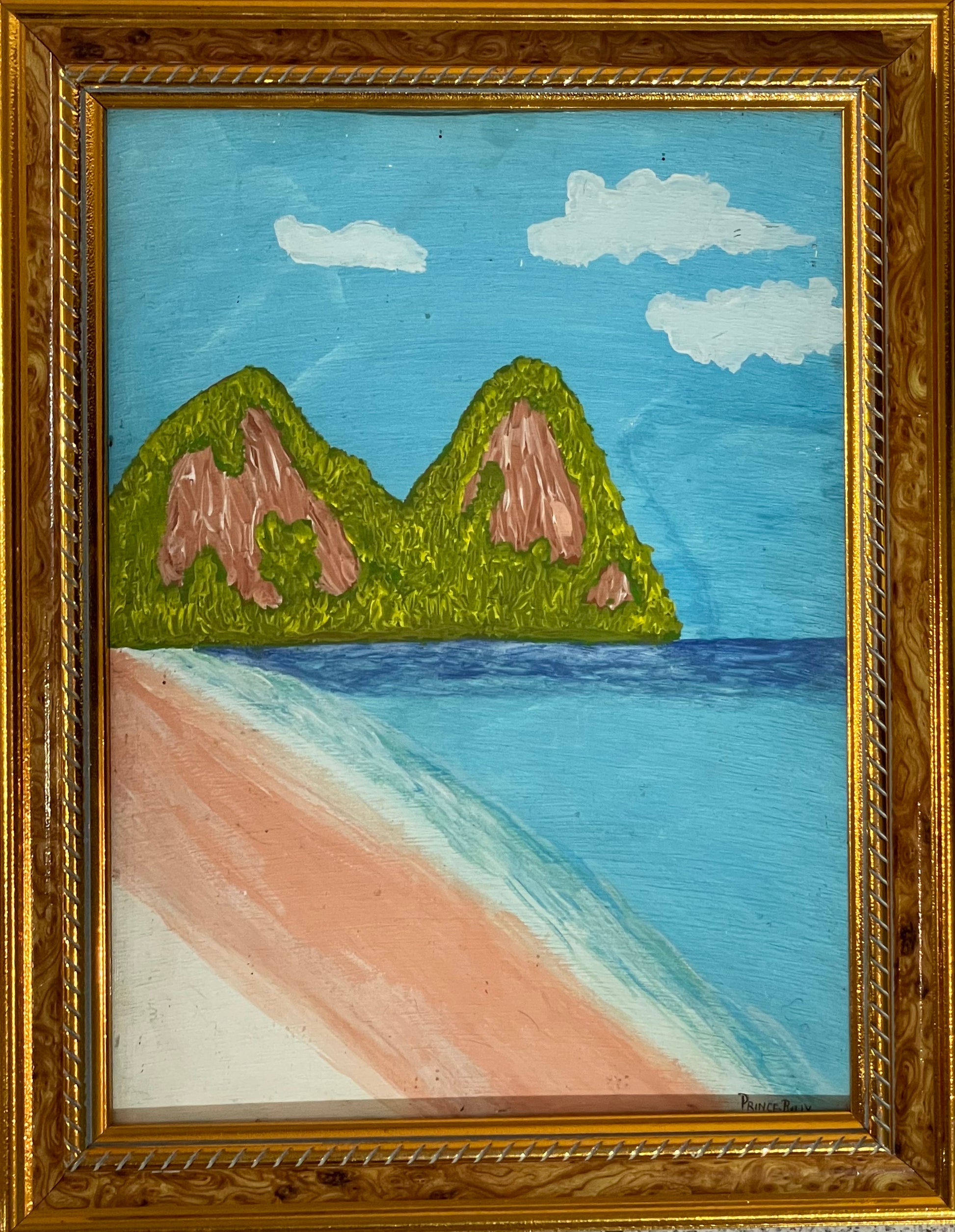 Escape to an island paradise with this stunning mixed media artwork by Prince Billy Mavuso. The intricate details of the seascape will transport you to a serene and tranquil place. Perfect for adding a touch of nature to any space.