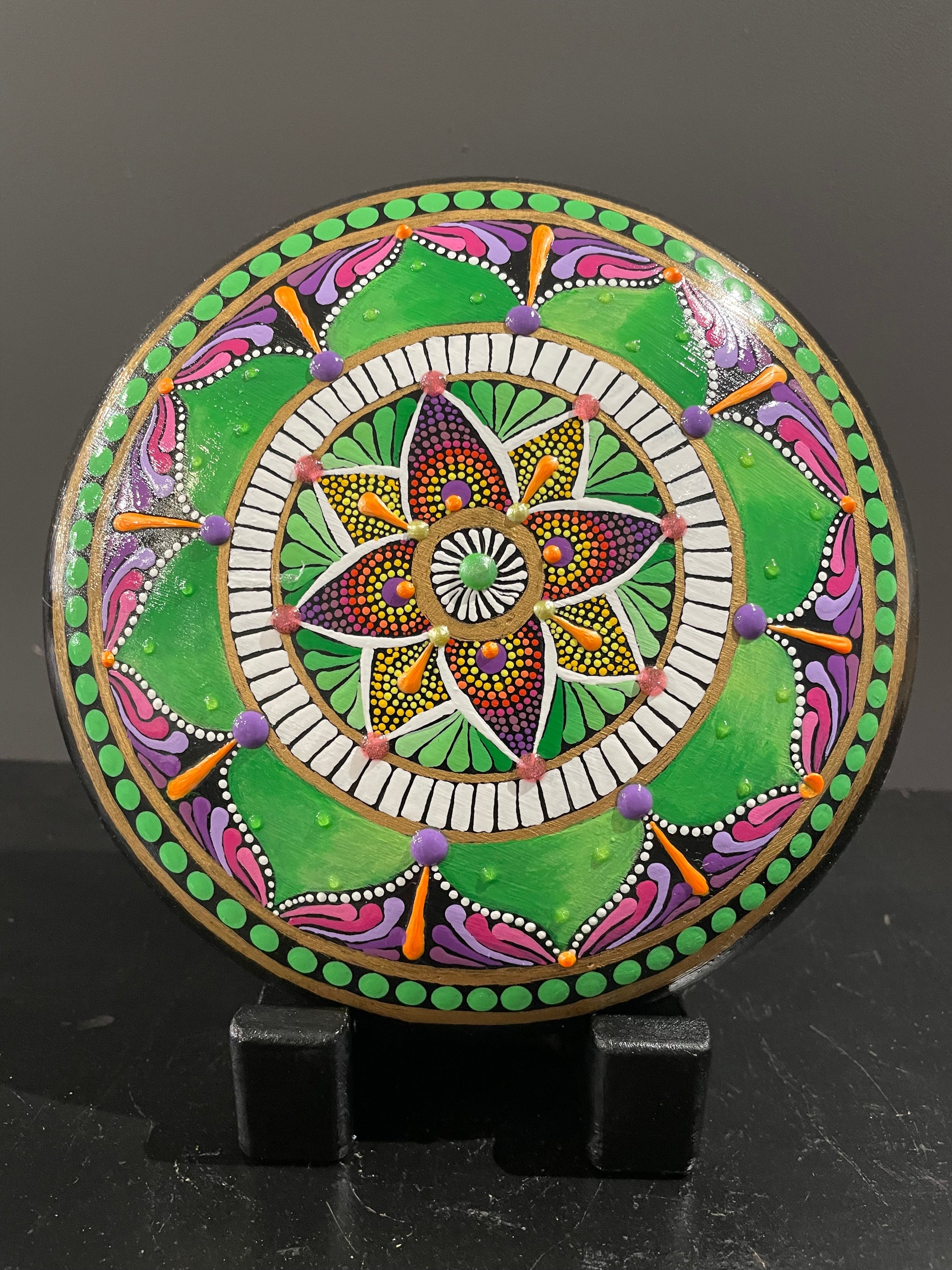 Elevate your home decor with Juliette, a stunning cast stone sculpture by renowned artist Antoinette Raats. The intricate acrylic dot art mandala design adds a touch of elegance and sophistication to any room. Each piece is expertly handcrafted, making it truly one-of-a-kind. Bring the beauty and charm of this masterpiece into your home today.