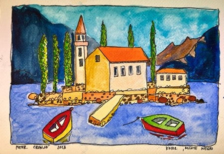 Experience the beauty of Kotor, Montenegro with this stunning watercolour painting by Pieter Cronje. The intricate details and vibrant colors bring to life the island cloister, making it the perfect addition to any art collection. Own a piece of Montenegro's rich culture and history.