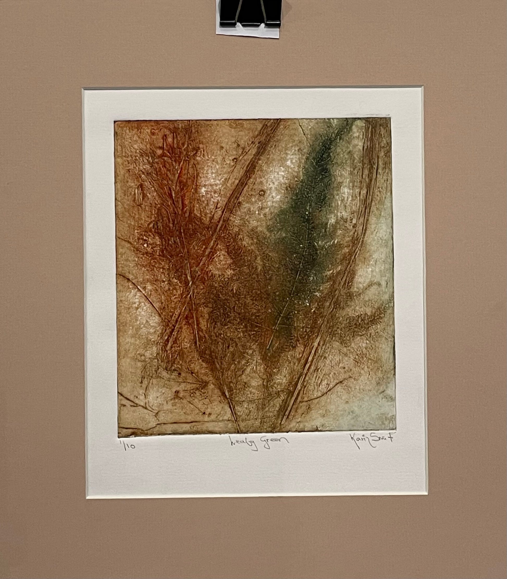 Add a pop of color and whimsy to your space with Karin Smit's "Leafy green II" print! This colorful collagraph features a variety of leaves, making it the perfect addition to any nature lover's home. Spruce up your walls with this unique artwork today!