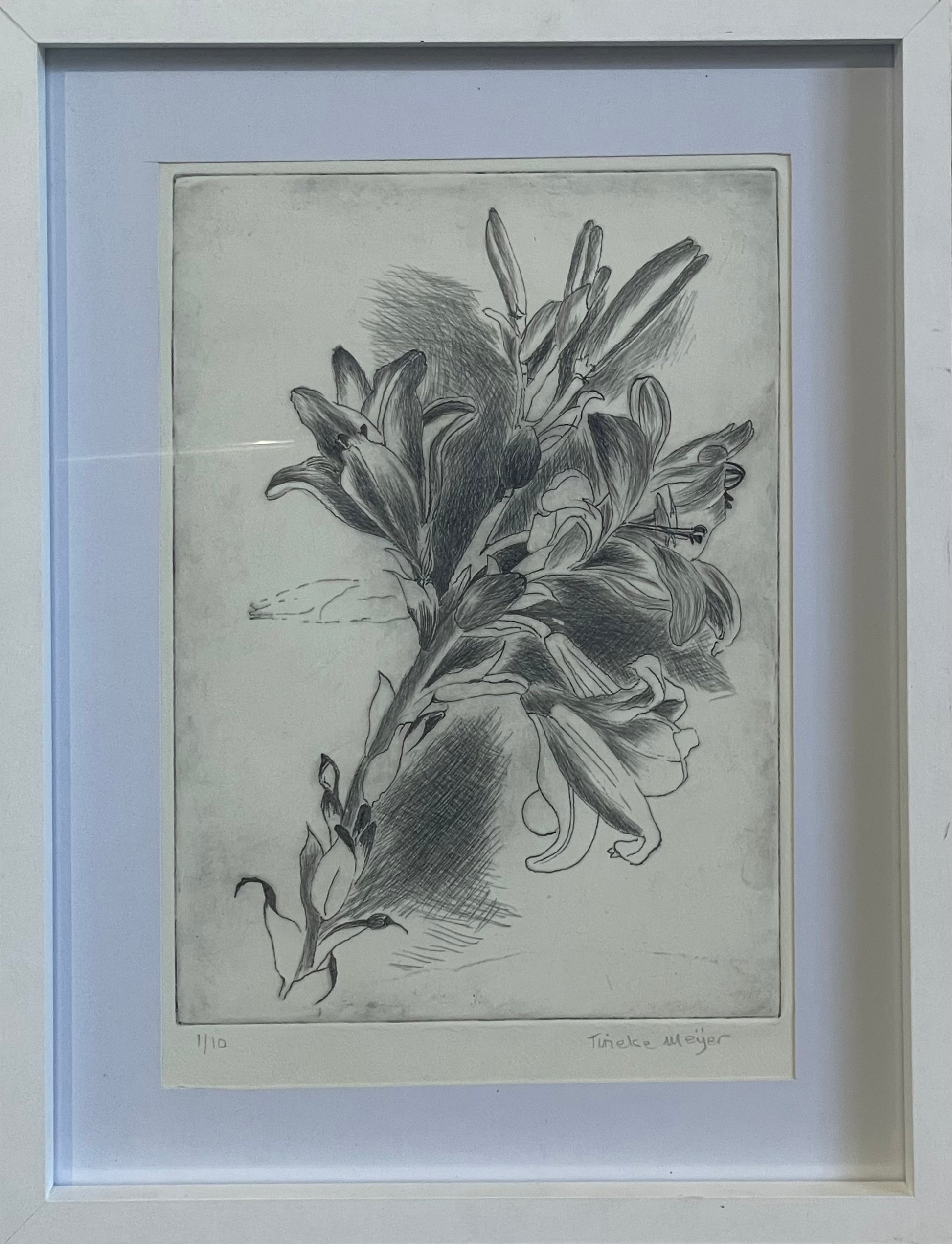 Expertly crafted by renowned artist Tineke Meijer, Lilly is a stunning drypoint etching print inspired by the delicate beauty of a lilly. Meijer's mastery of the medium captures the intricate details and textures of the flower, making this piece a must-have for any art lover or collector.
