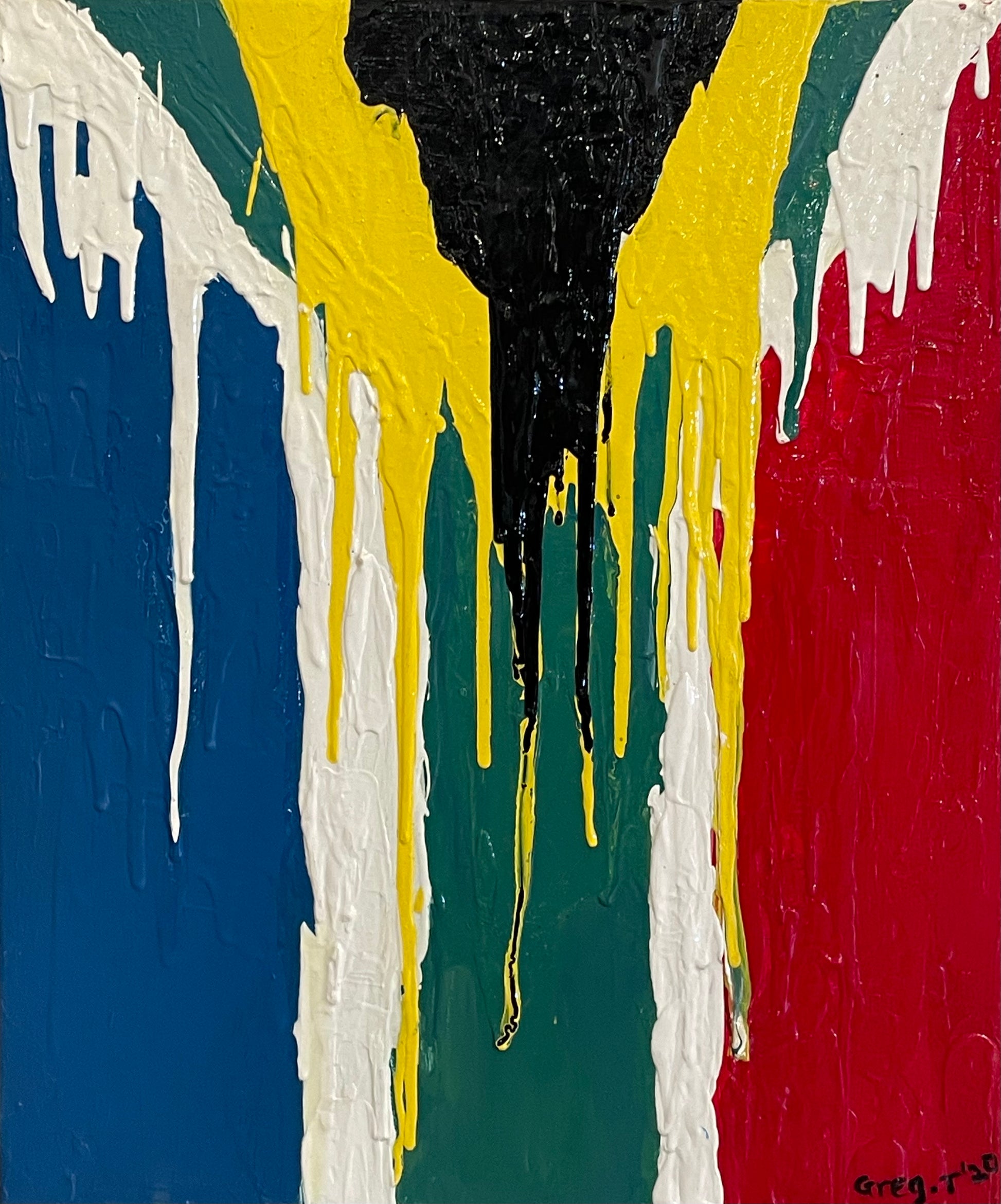 Explore the rich history and culture of South Africa with "Lost Soul," an oil painting by renowned artist Otsile Seleka. The vibrant colors and unique dripping effect of the South African flag create a powerful statement piece for any art lover. Bring a piece of Africa into your home with this stunning masterpiece.