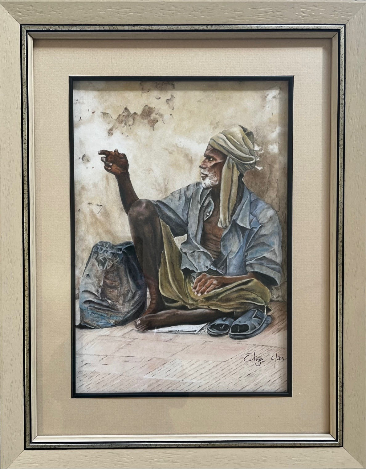 Discover the emotional depth of "On a Sidewalk Somewhere", a soulful painting that captures the raw essence of a street beggar. Let this intricate piece evoke a sense of compassion and contemplation in your space.