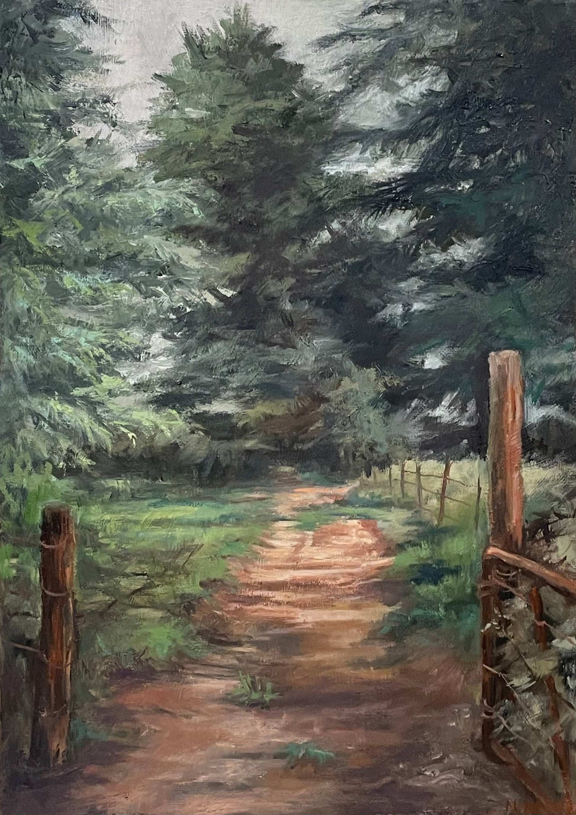 Explore the tranquil beauty of rural living with Plaaspad - KZN. This stunning oil painting by Nellien Brewer captures the essence of a farm road surrounded by lush trees. Add a touch of nature to your home decor and let this artwork bring a sense of peace and serenity to your space.