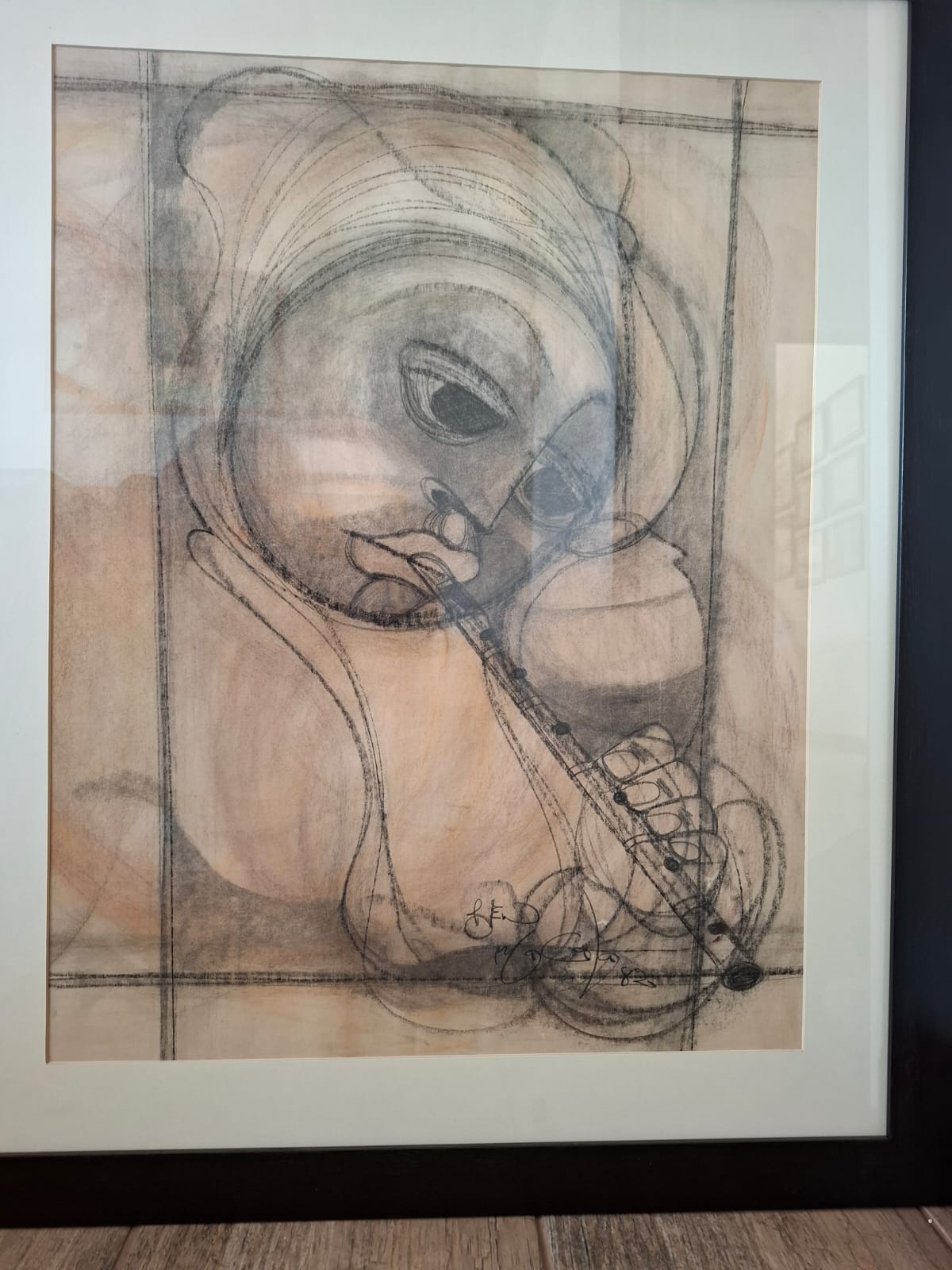 South African artist Ben Macala was born in Bloemfontein, Orange Free State and lived from 1937-1997. He was a painter and sculpture that focussed on figures and his very recognisable style of Picasso-like portraits with large eyes, often accompanied by musical instruments such as the flute. His preferred mediums of charcoal and pastel on paper made it easy for him to interpret his subject matter in a loose and free drawing style.