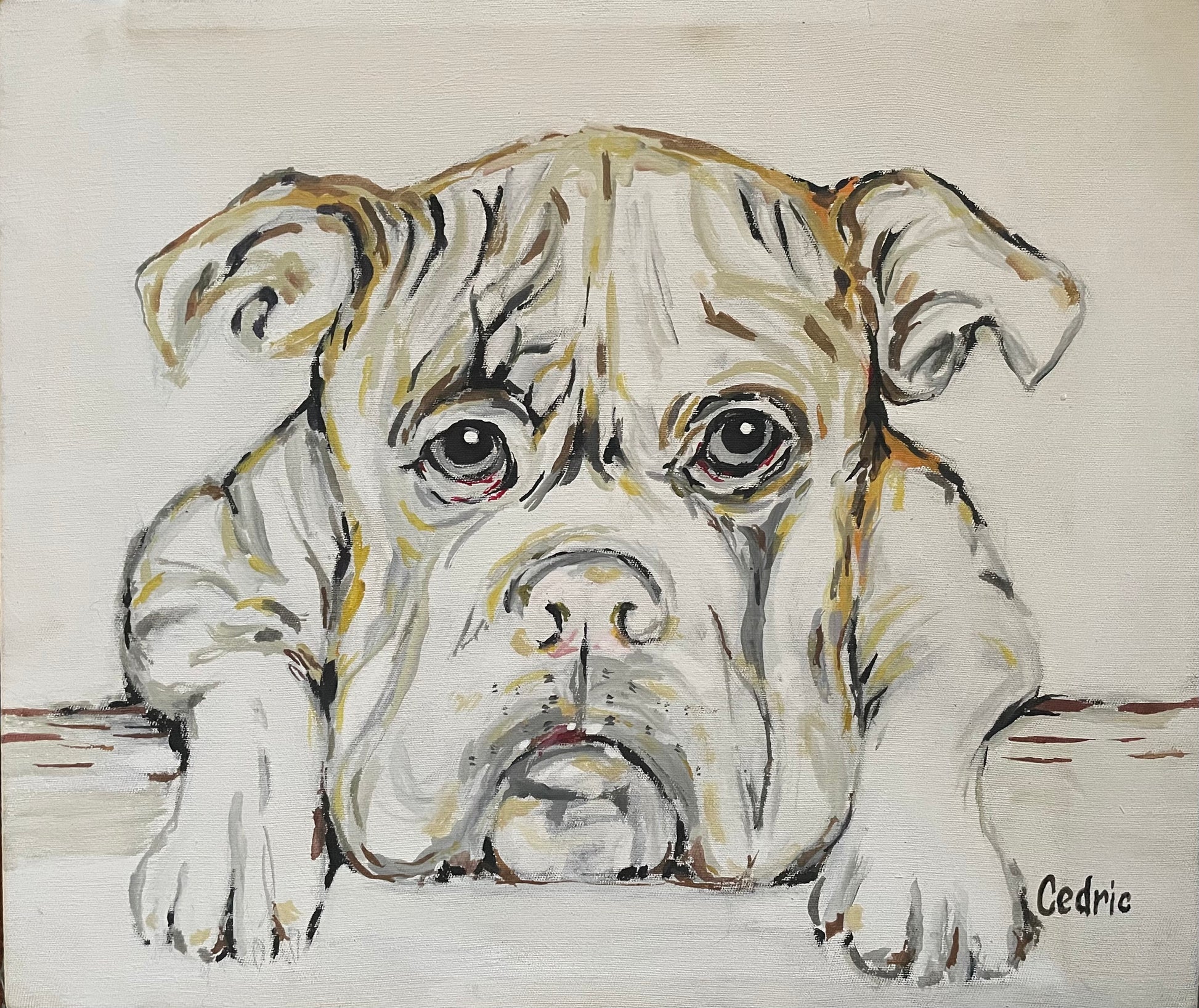 Expertly handcrafted, Protector showcases a stylized line painting of a dog on a reclaimed wooden frame and stretched canvas. With a professional touch, Cedric Peters' attention to detail elevates this piece, making it a unique addition to any collection.