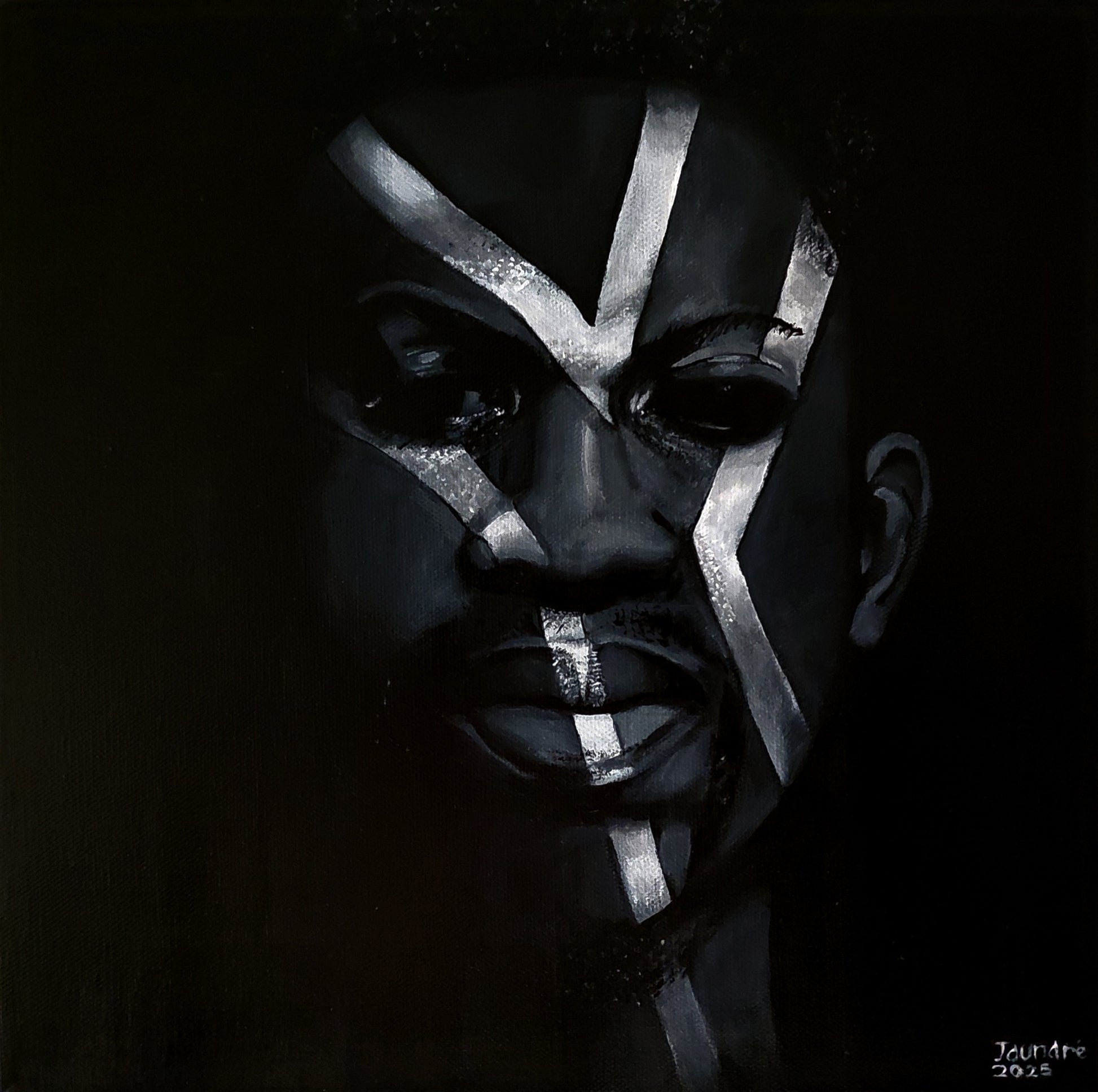 Proudly is a black-and-white portrait of a typical South African citizen. The South African flag is seen as an overlay over the individual’s face, making it a doubtless part of his identity. His facial expression could be translated as the natural appearance of everyday life. He doesn’t try to be anything other than himself. He doesn’t try to hide, either. The figure faces the viewer with an unshakable courage many can admire. The individual could have disappeared in the shadows surrounding him, but the fact that he doesn’t further supports his sincerity. Proudly is a reminder that we should be proud of who we are as South Africans regardless of race, gender, culture, or religion.