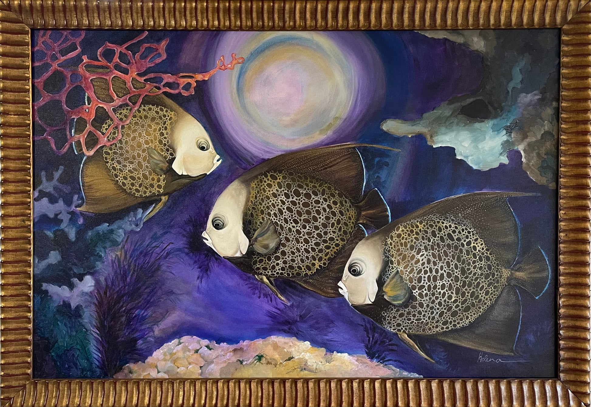 Dive into the depths and explore a world of color with Quiet Journey! This stunning acrylic painting by Helena Fann captures an underwater scene, featuring three lively fish swimming amongst vibrant corals. Feel the thrill of discovery and embrace the risk of the unknown with this bold and inspiring artwork!
