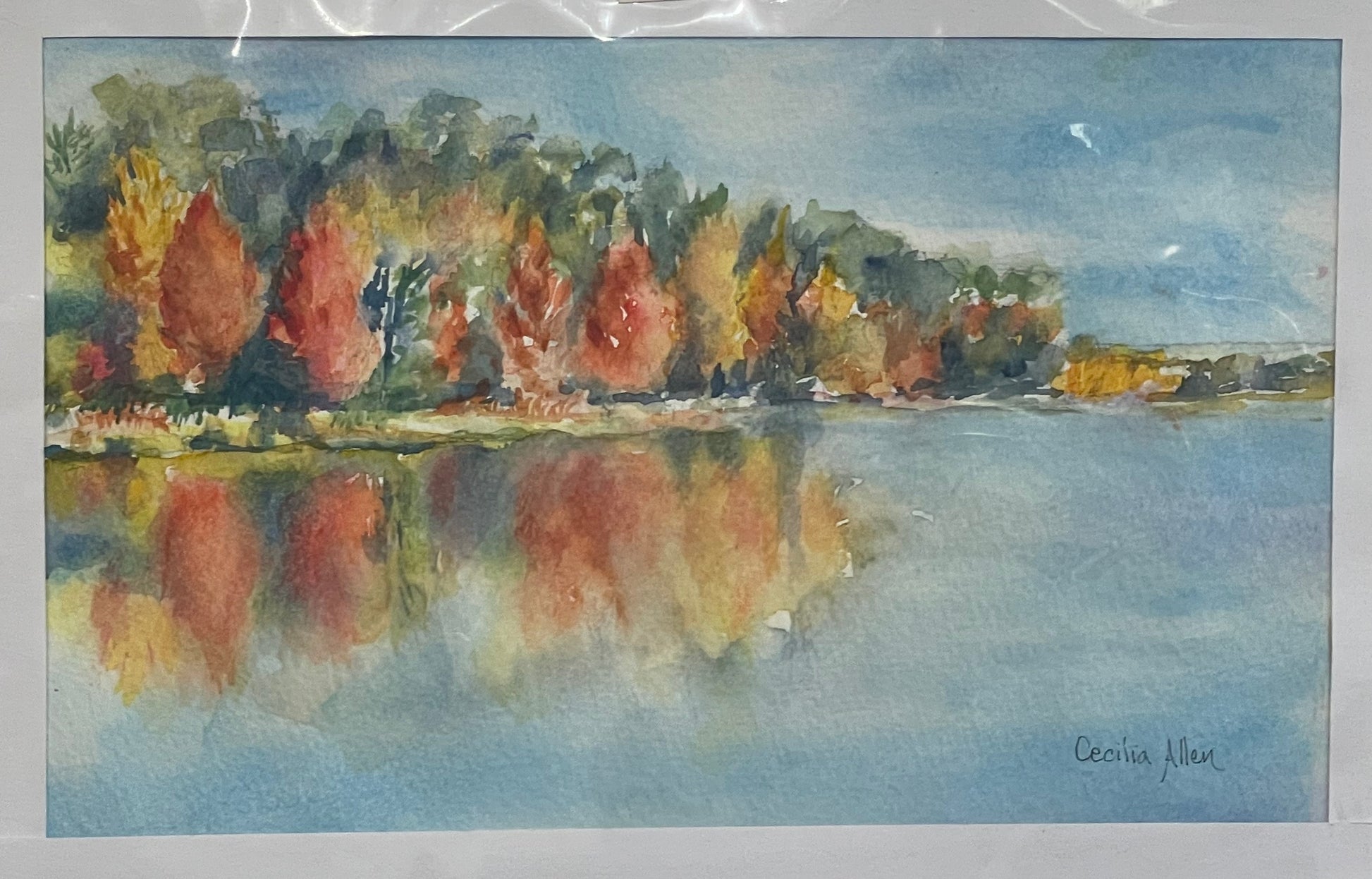 This serene watercolour painting by Cecilia Allen perfectly captures the stillness and beauty of nature. With vibrant hues and intricate details, the distant trees reflected on the quiet lake will add a peaceful touch to any space. Bring the calming essence of the outdoors into your home with "Reflecting".