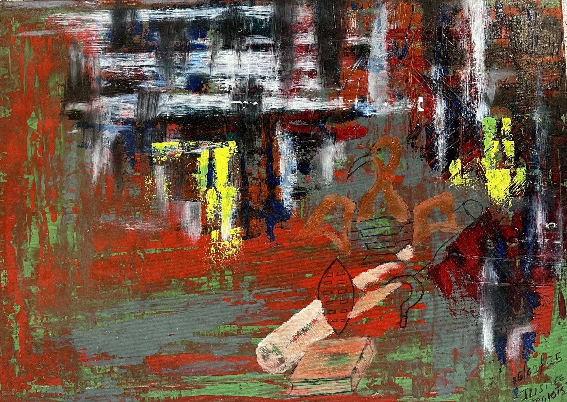 Step into a world where colours tell tales of "Reminiscent of Old Africa"! This playful abstract painting sprinkled with African symbols on the canvas and vibrant energy. Perfect for adding a pop of cultural pizzazz to any room.