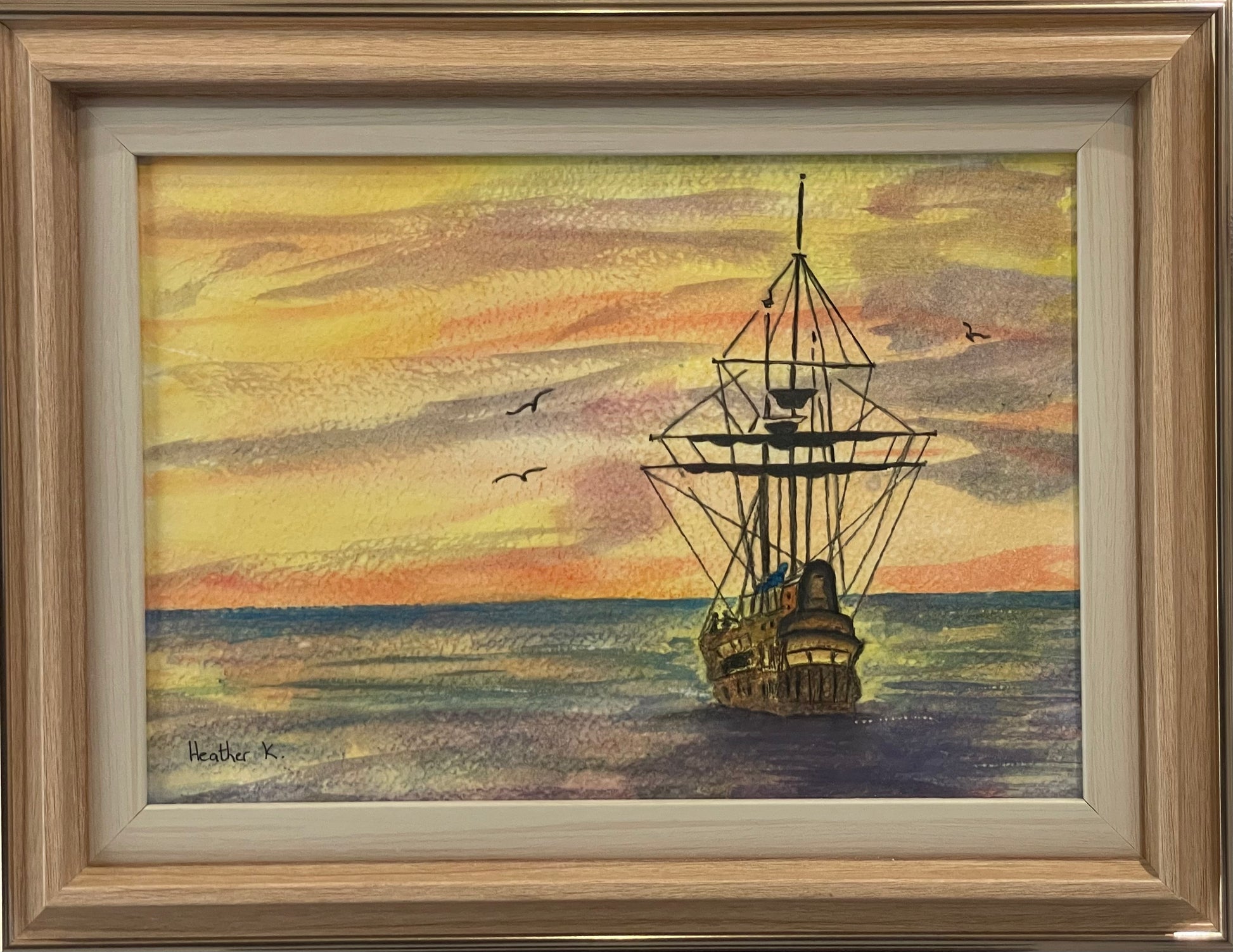 Experience the thrill of adventure with this handmade watercolour painting by renowned artist Heather Krul. "Sailing away - Pirate ship at sea" captures the beauty and excitement of life on the open waters. Perfect for any nautical lover or art collector.