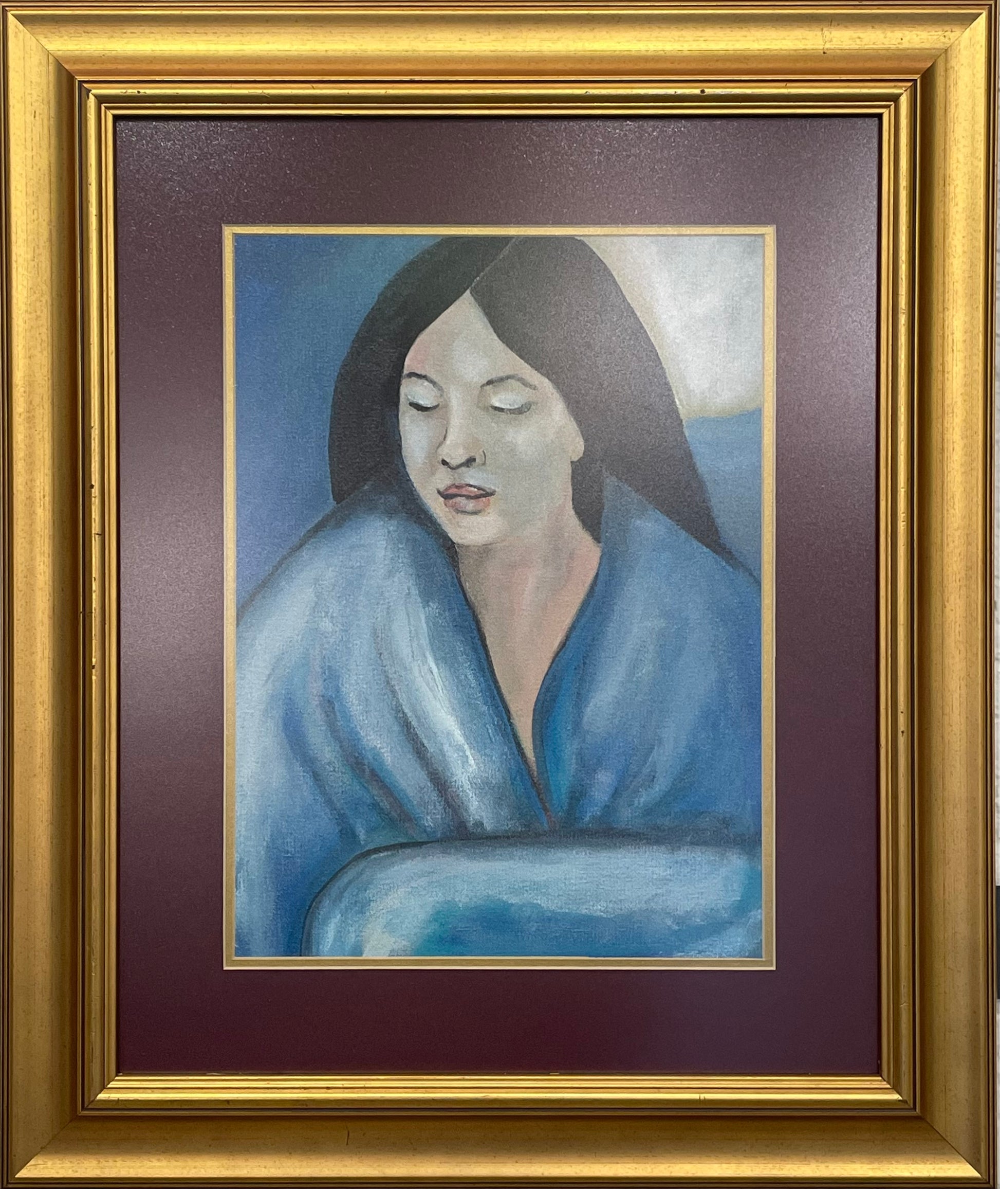 Experience a moment of peaceful tranquility with Serenity - an exquisite oil painting created by Henny Luus. This breathtaking portrait of a woman draped in blue evokes a sense of serenity and grace, making it the perfect addition to any art collection. Bring a touch of elegance and tranquility into your home with Serenity.