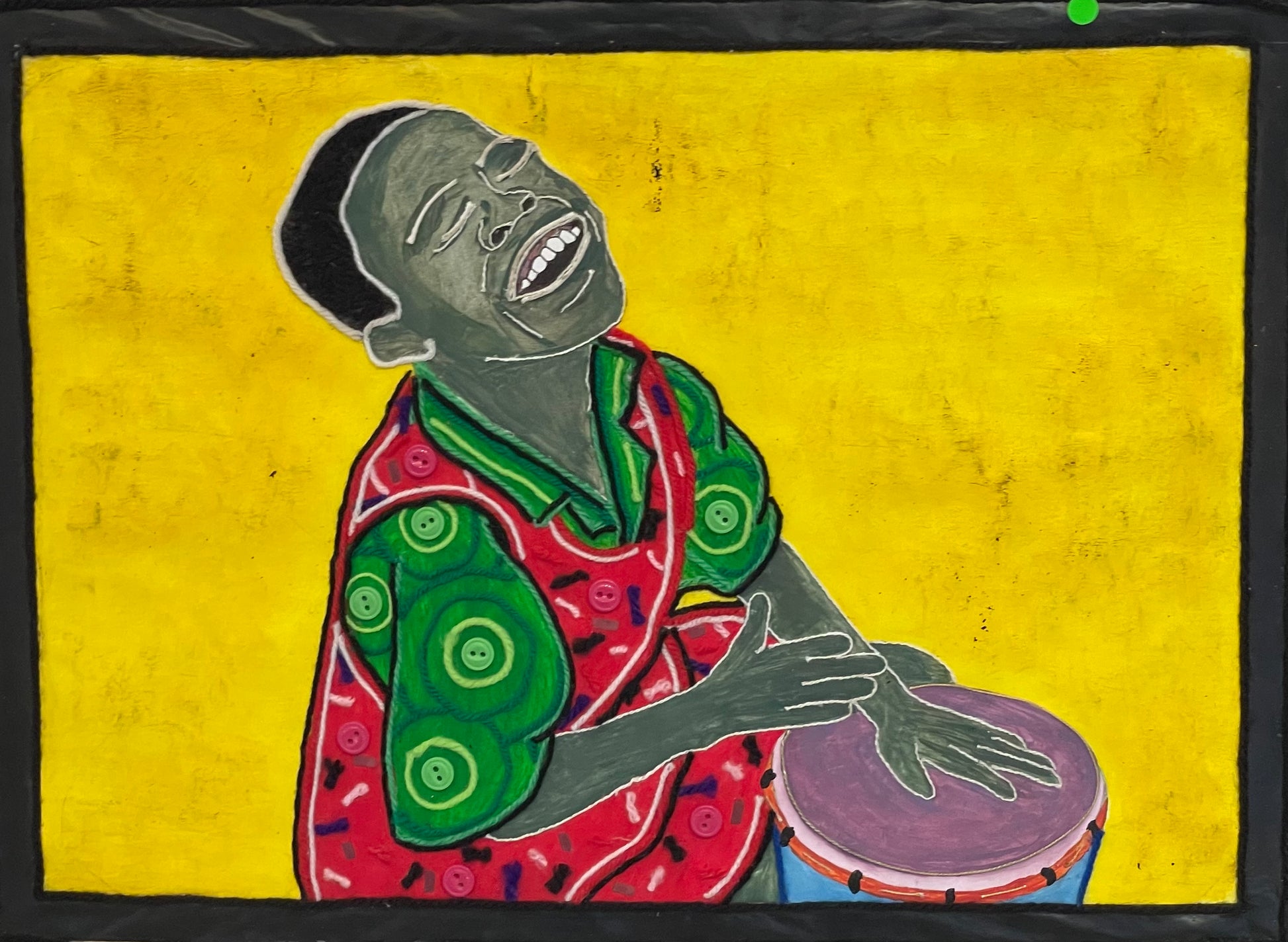 Discover the beauty of cultural expression with Sgupu Sa Chaaa. This mixed media painting by Luvo Disane portrays a man playing a drum with a serene smile and closed eyes. Transport yourself to the vibrant atmosphere of music and joy with this exquisite artwork.