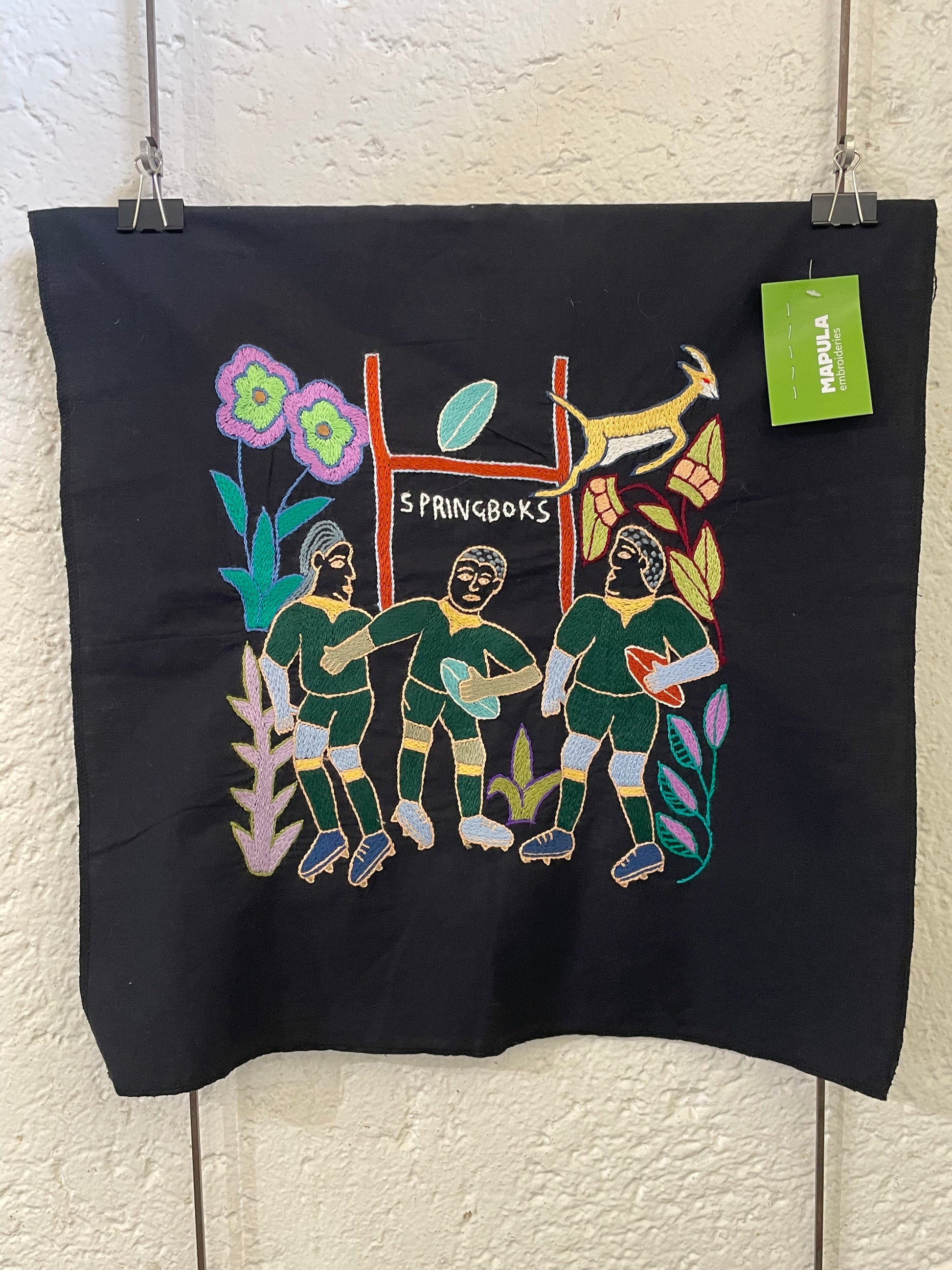 Elevate your home decor with the exclusive Springboks pillow cases. Hand-embroidered on Edenrose cotton by Mapula Embroideries, these luxurious pieces showcase the skill of the artists. Support the Springbok rugby team while adding a touch of sophistication to your living space. (Excludes pillow)