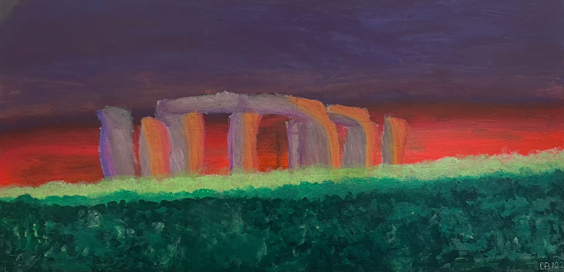Experience the beauty of Stone henge at sunrise with this stunning acrylic painting enhanced by oil pastels by Dominique Becket (FireLilyArt). Every brush stroke captures the majestic and dramatic atmosphere, bringing it to life right in your own home. Add a touch of wonder and awe to your decor with Stone henge.
