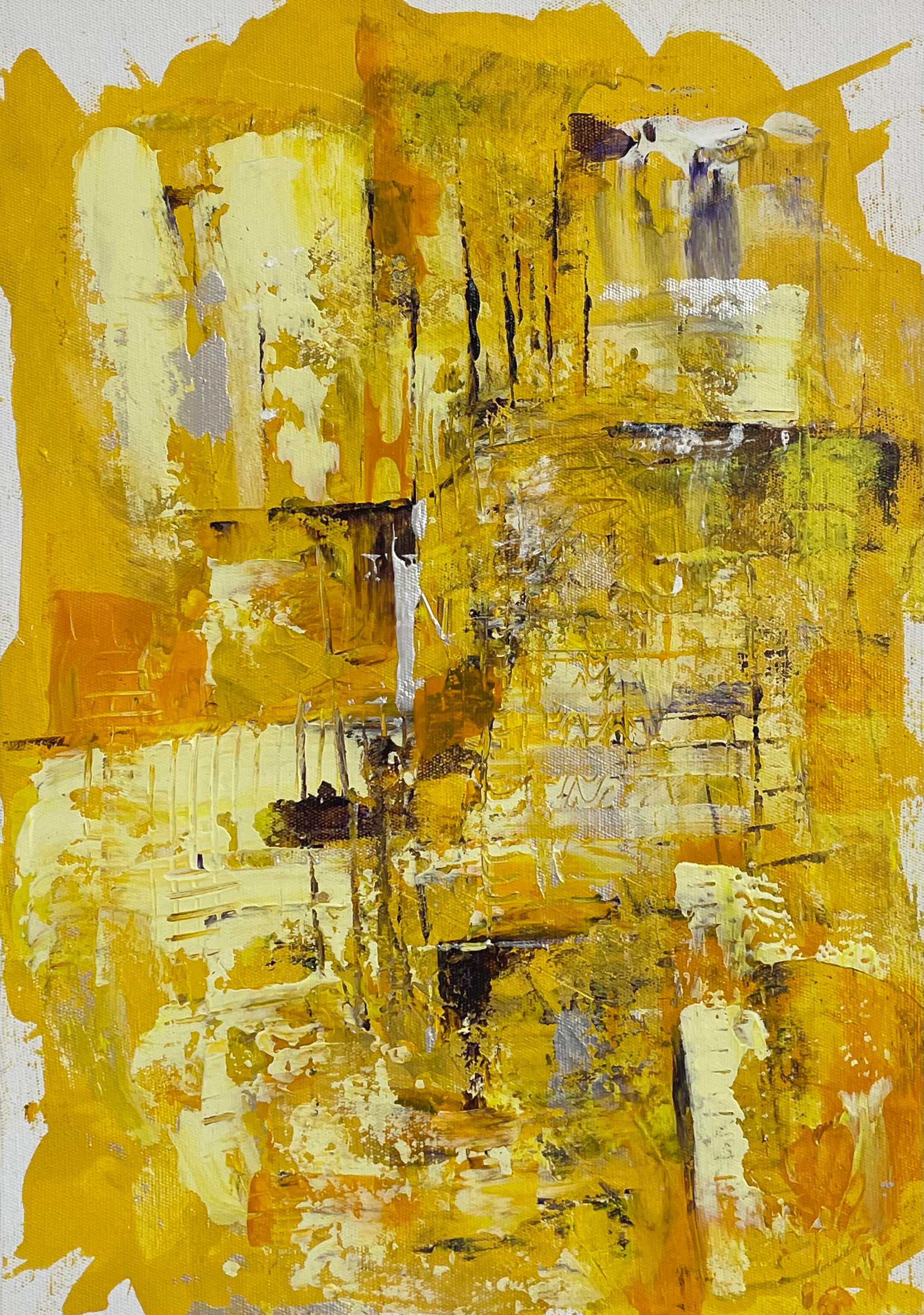 Indulge in luxury with the Study in Yellow 2, a mesmerizing acrylic abstract painting. Admire the intricate brushstrokes and vibrant colors of this exclusive piece. Enhance any room with the sophistication and elegance of this artwork. Elevate your space with the Study in Yellow 2.