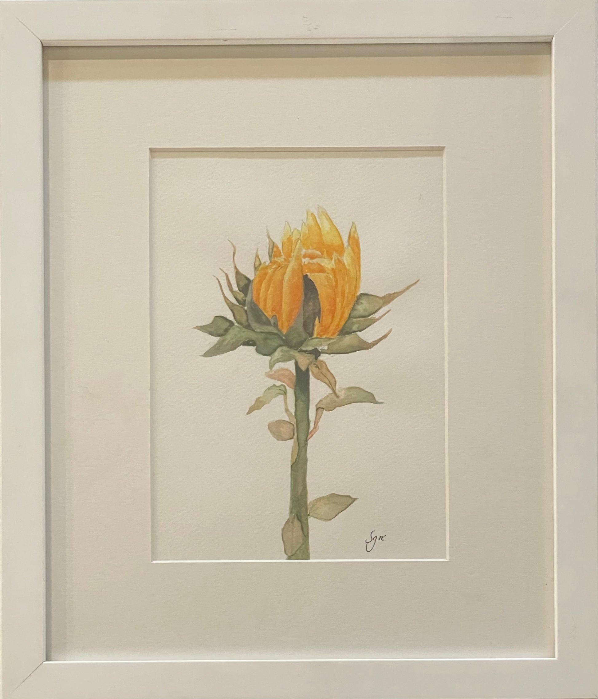 Unleash your love for nature with this stunning watercolour painting of a sunflower by Surita Goosen. Capturing the delicate beauty of a sunflower before it opens, this piece will add a touch of elegance to any space. Perfect for nature lovers, art enthusiasts, or anyone looking to add a pop of colour to their home.