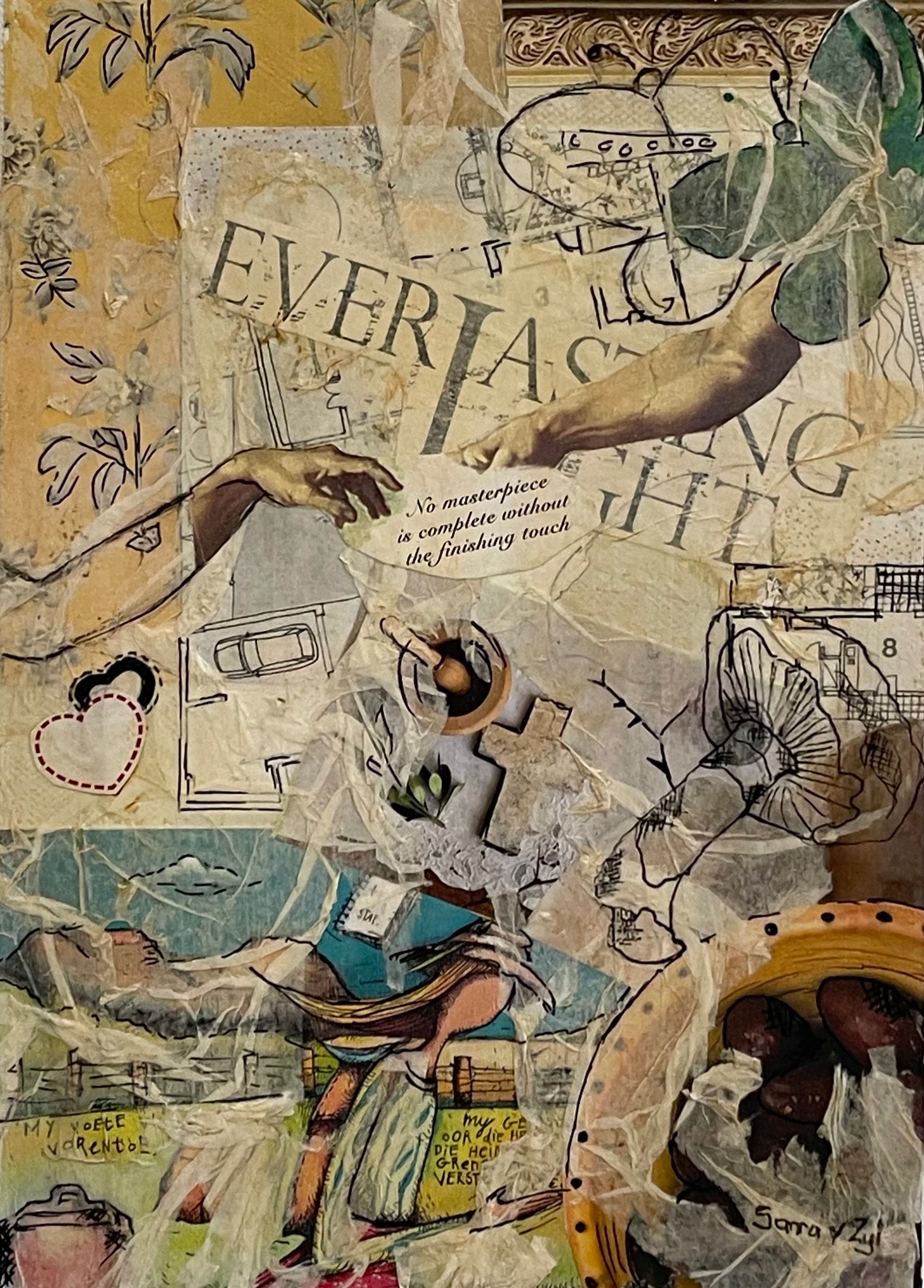 Explore the layers of truth with "The Truth" mixed media collage by Sanra van Zyl. Through powerful symbols, this piece captures the artist's personal journey and invites viewers to reflect on their own truths. Unlock new perspectives with this thought-provoking artwork.