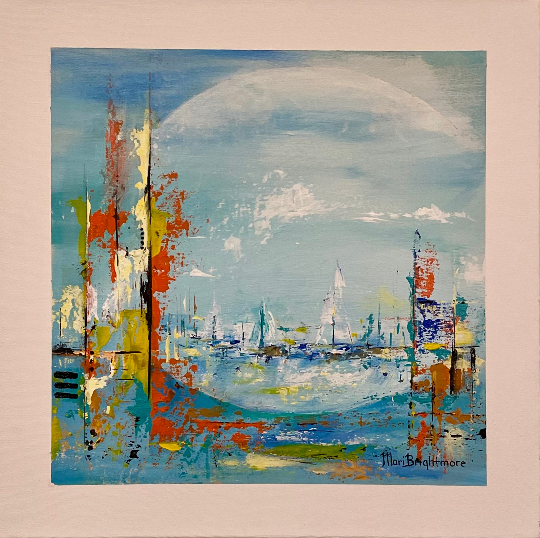 This stunning acrylic painting by Mari Brightmore captures the peaceful essence of sailing. With an abstract composition and ships sailing on the ocean in the background, this painting will bring a sense of tranquility and serenity to any space. Perfect for any art enthusiast or lover of the sea.