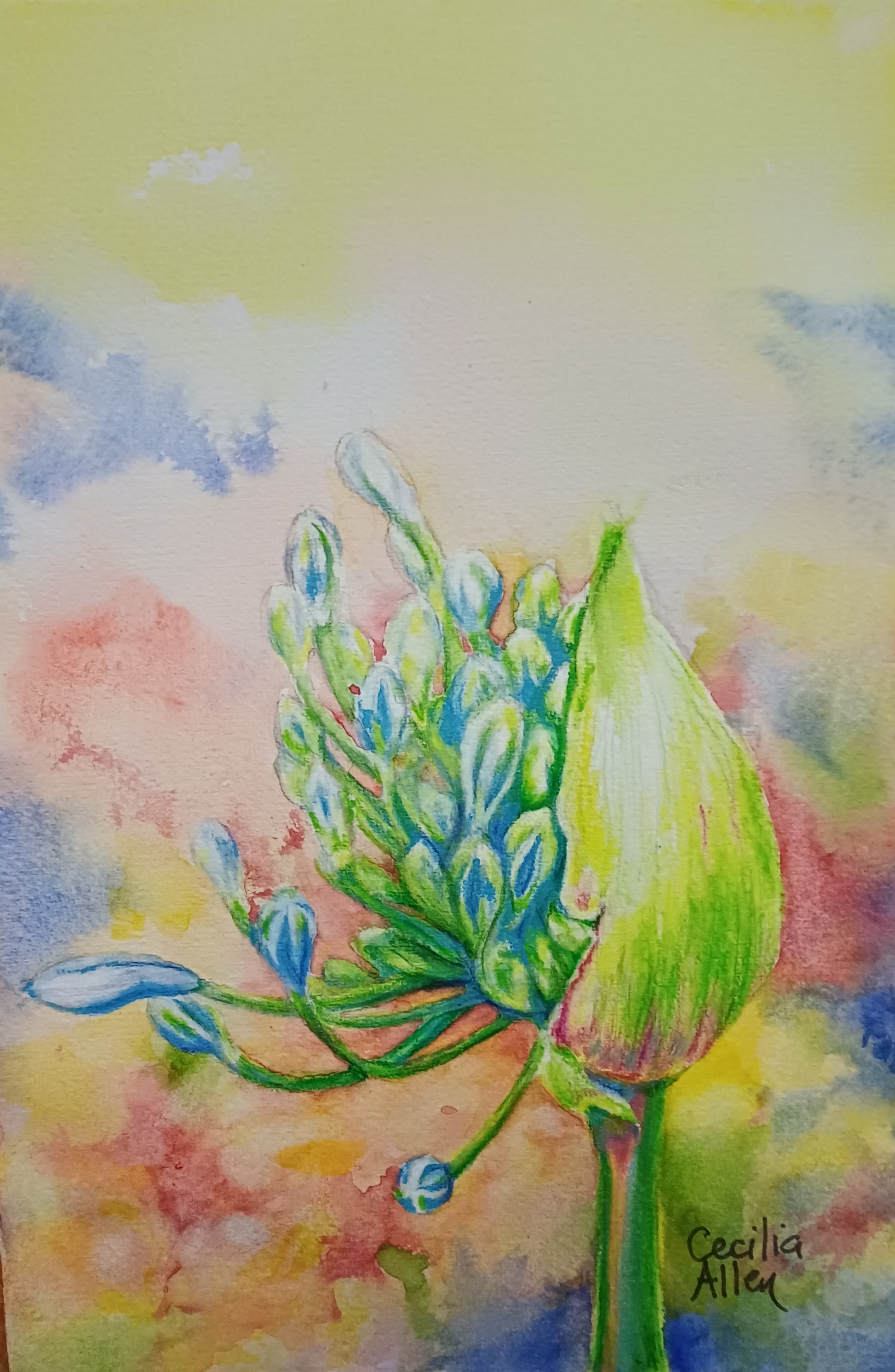 Boldly capture nature's fragile beauty with "Transforming," a striking watercolor of a budding blue flower. This daring piece blends delicate petals with vibrant blue hues, evoking growth and renewal. Perfect for those who appreciate art that challenges the ordinary, it brings a fresh, spirited energy to any space.