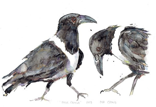 This watercolour painting by Pieter Cronje captures the beauty of two crows in stunning detail. The expert use of colours and brushstrokes brings life to these birds, making it a perfect addition to any art lover's collection. With this piece, you can bring a touch of nature into your home or office and admire it for years to come.