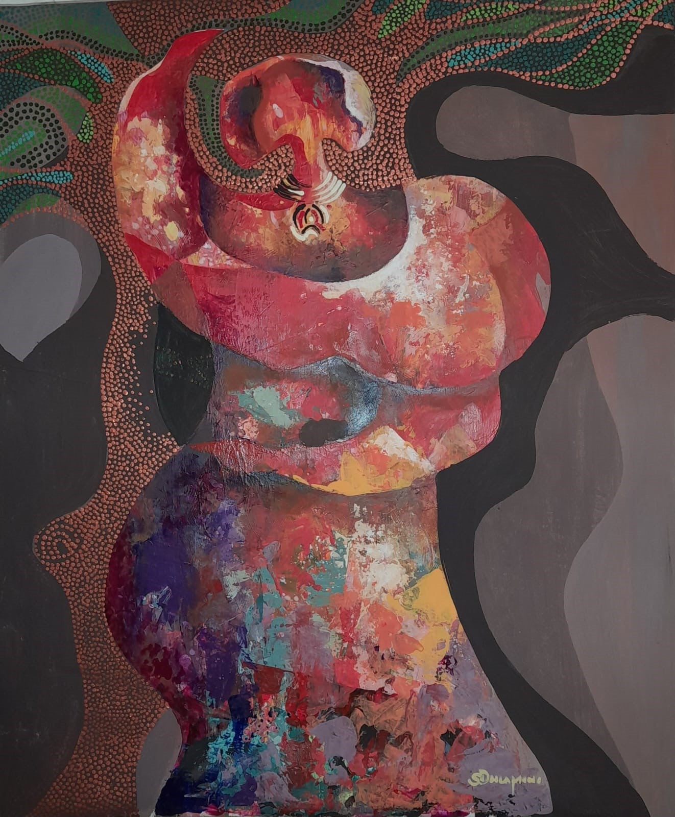 Celebrate the spirit and colours of Africa with "Under the Tree 1," a vibrant abstract painting capturing the essence of an African woman by a tree celebrating life. This lively artwork bursts with bold hues and dynamic shapes, bringing energy and warmth to any space. Perfect for adding a playful touch of culture and creativity to your home or office.