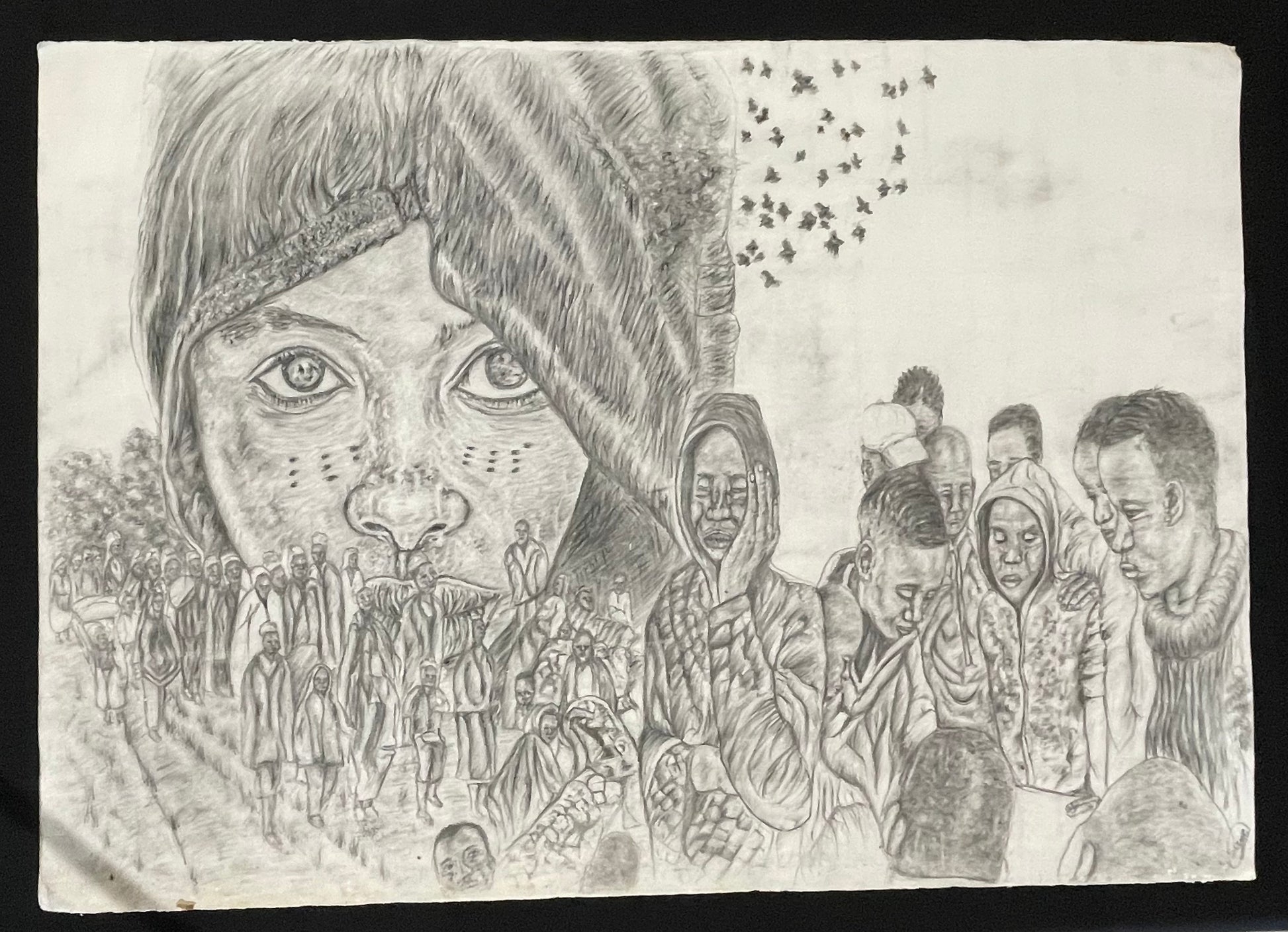 Immerse yourself in the captivating essence of Shimane Seemise's Untitled II, a graphite masterpiece featuring a woman amidst a flock of birds. Every detail is meticulously crafted, from the bustling background to the woman who exudes an ethereal aura. This one-of-a-kind piece is an essential addition to any art connoisseur's collection.