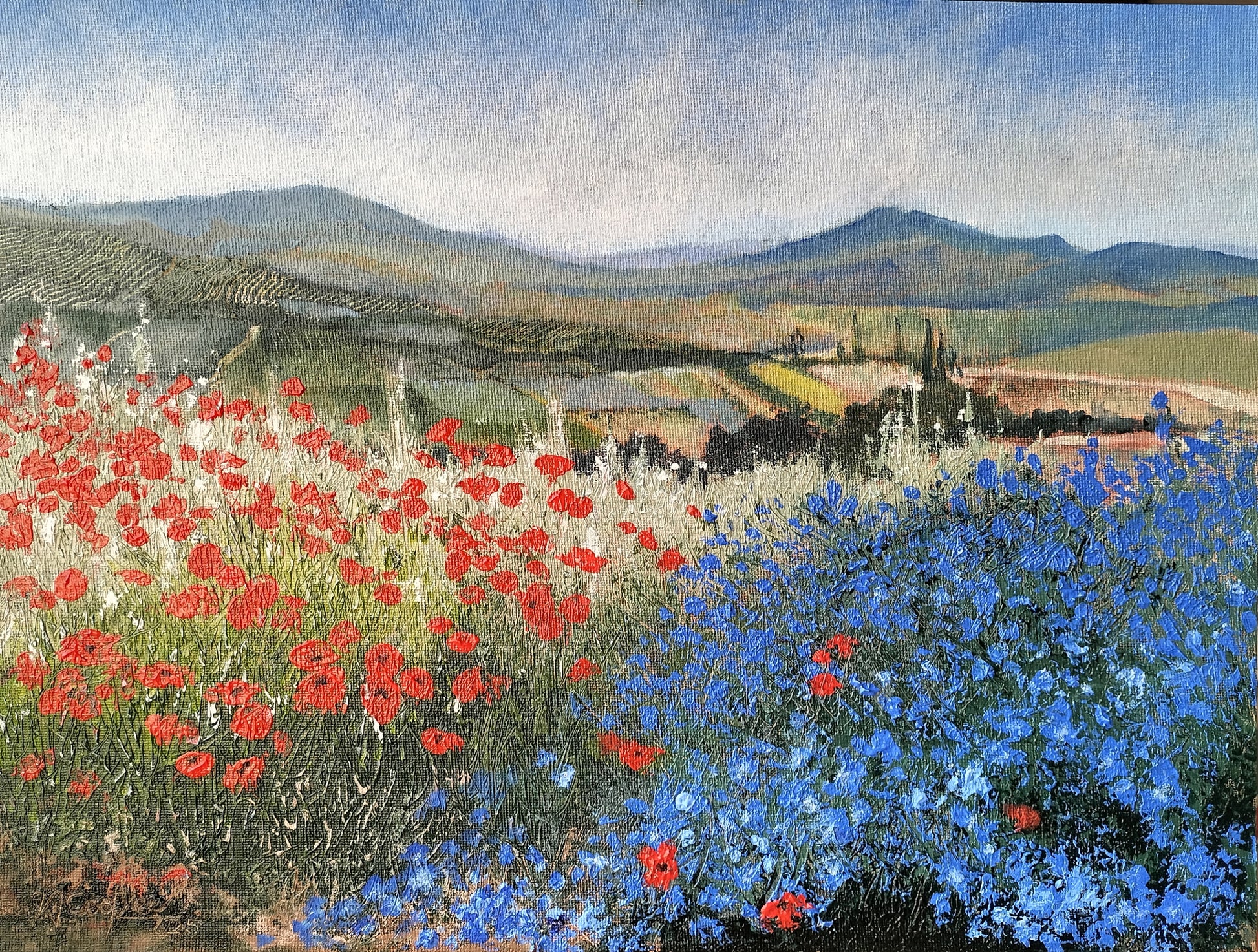 Experience the beauty of nature with Ver-kyk, a stunning landscape painting featuring majestic mountains and vibrant flowers. This exquisite piece of art will add a touch of elegance and sophistication to any room. Bring the outdoors inside and elevate your space with Verkyk.