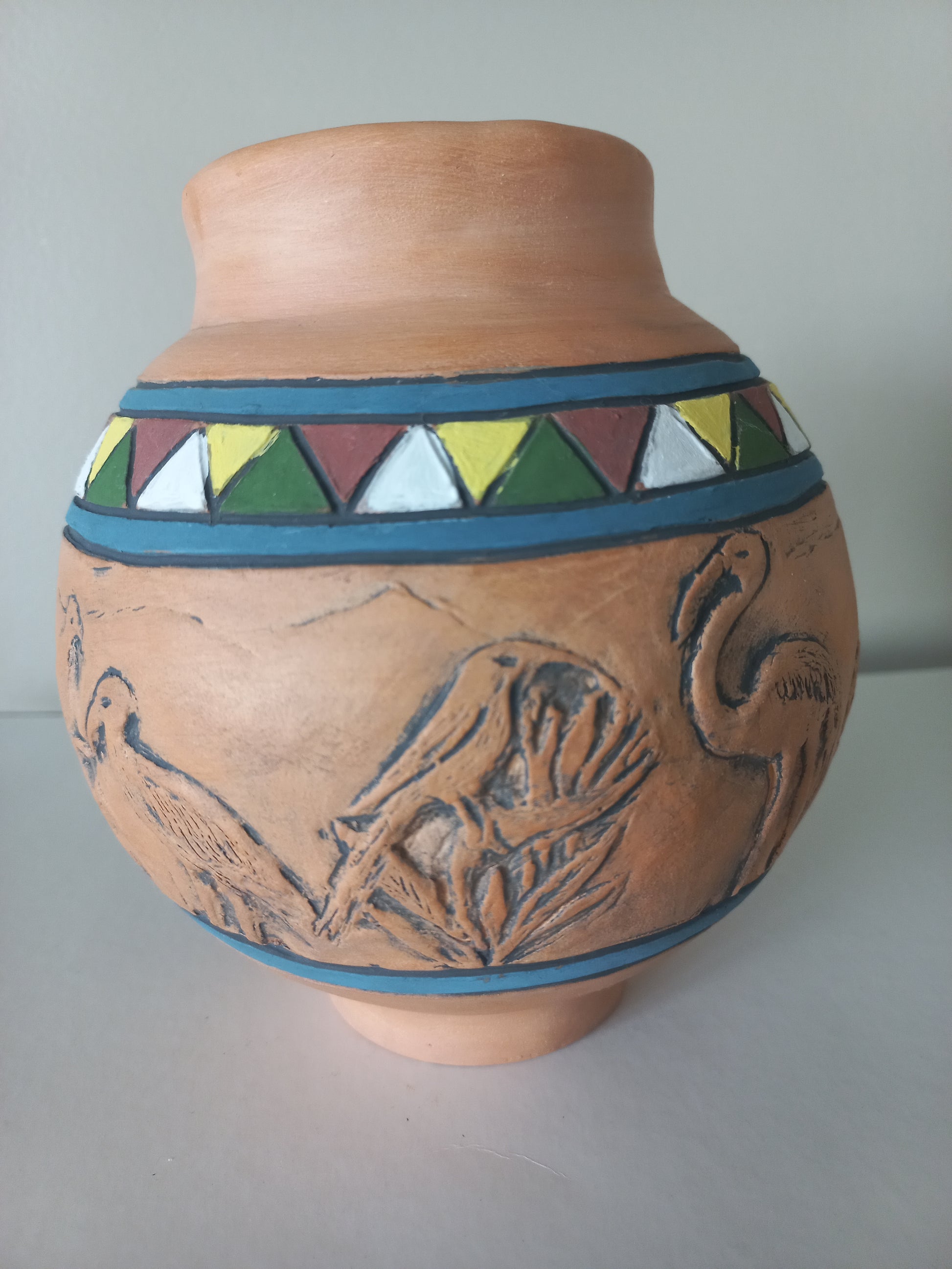 Suid-Afrika het baie verskillende voëls – van die helder pienk flamink tot die skaam tarentaal en van die veelkleurige pou tot die klein suikerbekkie. Voëls bring kleur en lewe na ons tuine, wildtuine en plattelandse areas en die verskeidenheid voëlspesies maak ons land spesiaal. Die voëls wat op die pot uitgekerf is illustreer die uiteenlopendheid van ons voëlspesies.